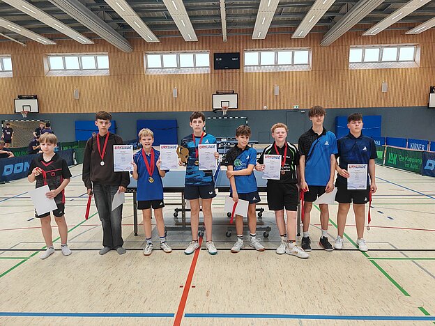 Die älteste Jugendklasse, Jugend 19, stand im Zeichen der TTG Bingen/Münster-Sarmsheim: Johannes Richter gewann sowohl das Einzel als auch – gemeinsam mit Linus Balzer – das Doppel.