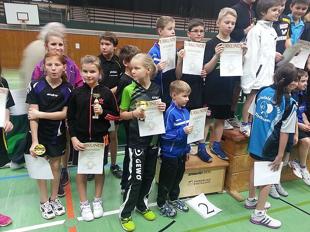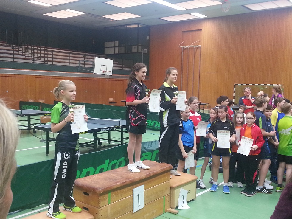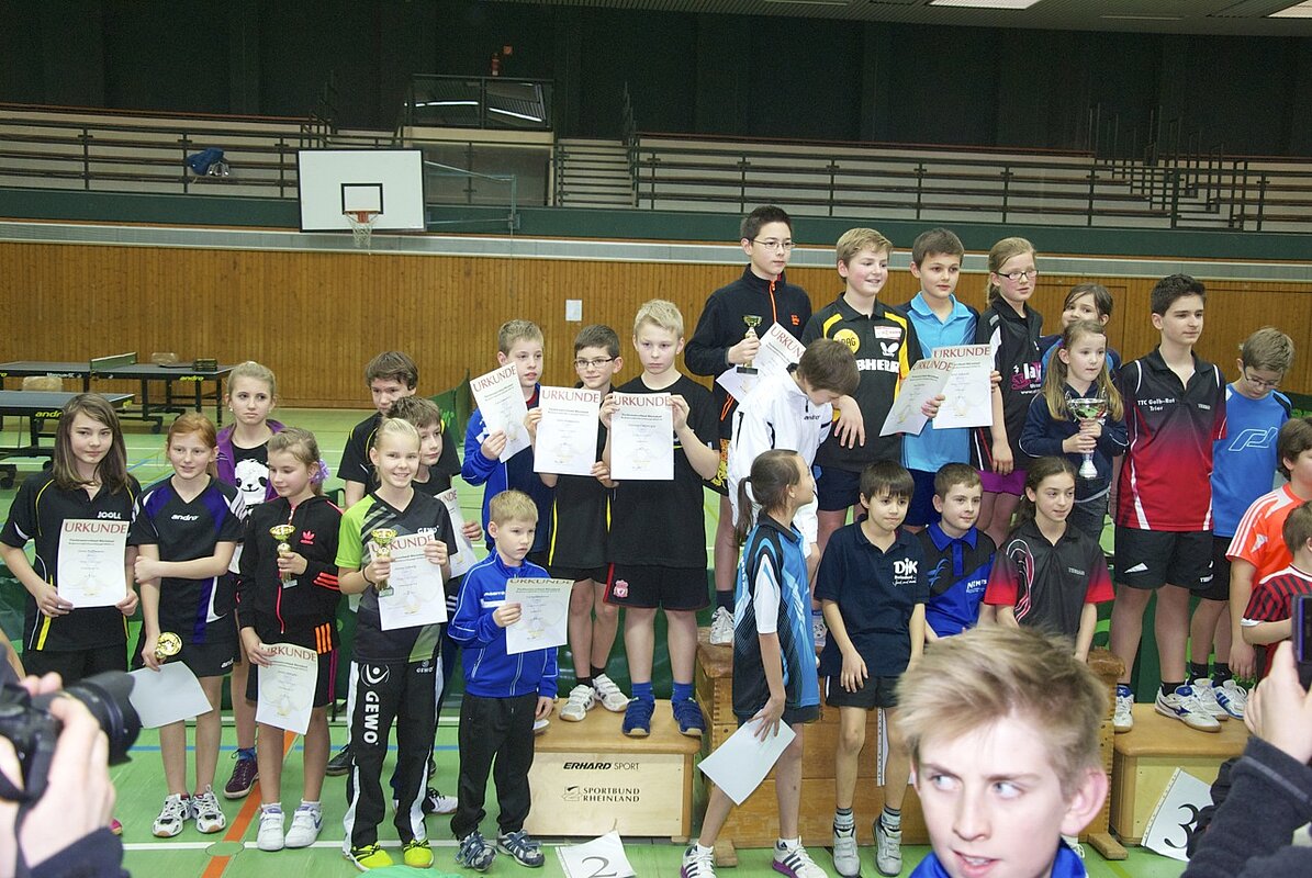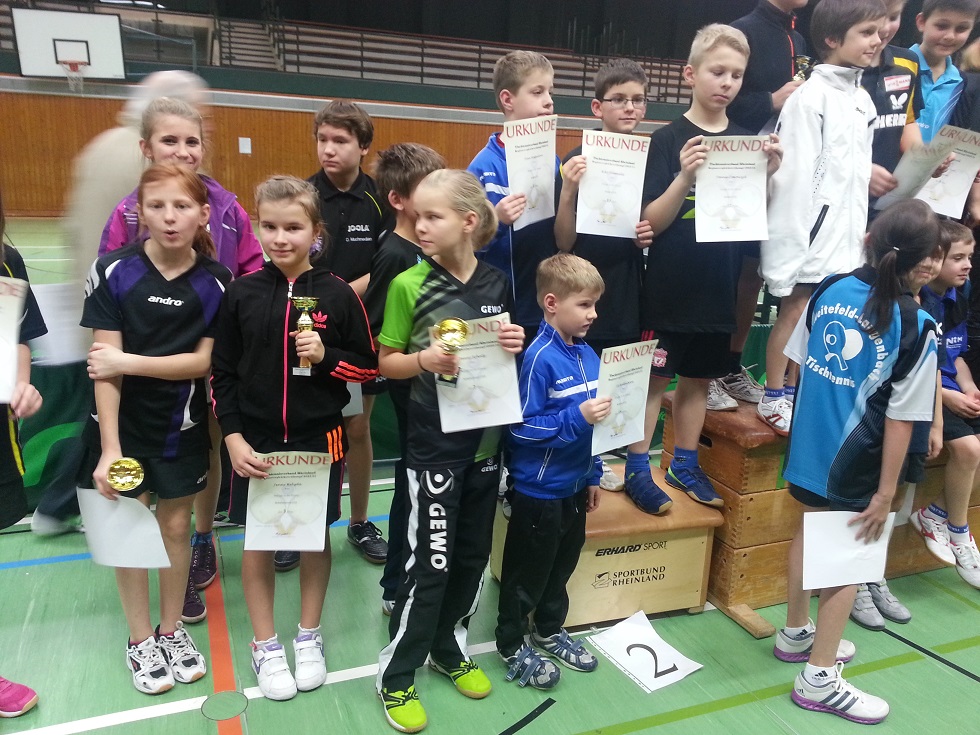 Insbesondere in den Mädchen-Wettbewerben der unter 11-Jährigen und der unter 13-Jährigen ließen die Eifel Akteurinnen den sieben Konkurrenzregionen kaum eine Chance. So wurde Maria-Louisa Gneiding Siegerin in der U 11 Klasse, dicht gefolgt von Jenny Rebzda als dritte. Das hervorragende Ergebnis der Mädchen unterstrichen Jenny Schalz mit Platz 2 und Christiana Schäfer mit Platz 4 in der U 13 Klasse. Während die Mädchen vordere Plätze belegten mussten sich die Jungen mit Mittelfeldplätzen zufrieden geben, einzig Finn Rodenborn belegte mit Platz 4 in der U 9 Klasse eine vordere Platzierung. Die Masse an vorderen Platzierungen der Mädchen und die Mittelfeldplätze der Jungen gaben am Ende den Ausschlag für den zweiten Platz in der Mannschaftswertung. Der hier erzielte Erfolg im Vergleich der acht Regionen des Rheinlandes, ist seit Jahren der Größte den die Tischtennisregion Eifel aufweisen kann und unterstreicht nicht nur die wachsende Tischtennisbegeisterung in der Region, sondern zeigt dass die intensive Nachwuchsarbeit in den Vereinen und in der Region belohnt wird.