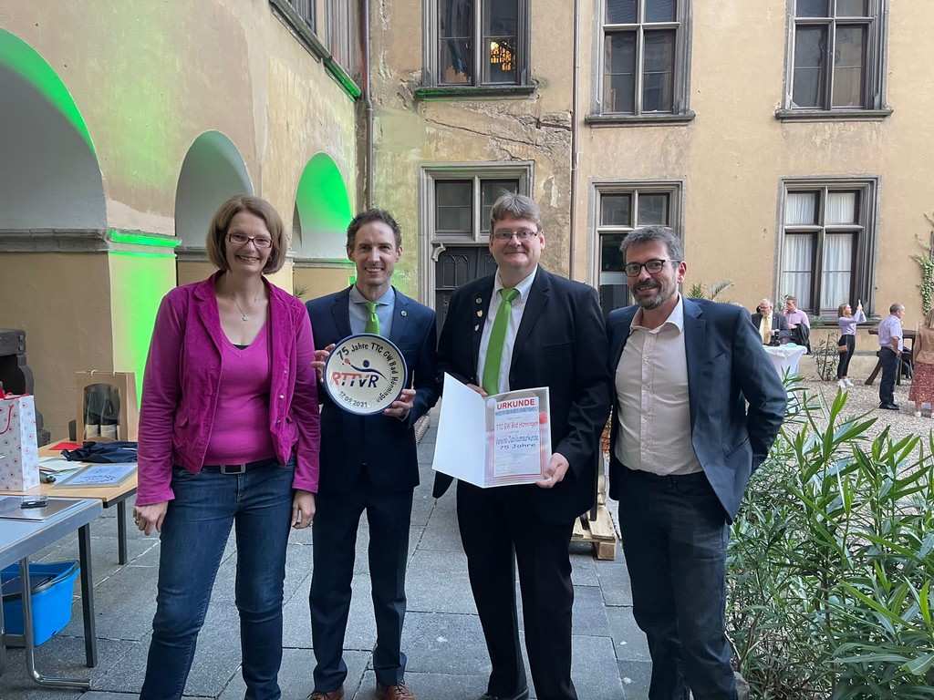 Der Vizepräsdent Sport Marcel Mareien und die Kreisvorsitzende des Tischtenniskreises Koblenz Neuwied überreichten dem ersten Vorsitzenden Peter Zwiener und dem Vorsitzenden des Festausschusses Jörg Honnef im Namen des RTTVR einen Ehrenteller und ebenfalls eine Urkunde.