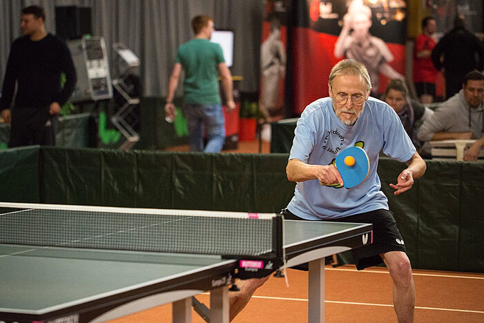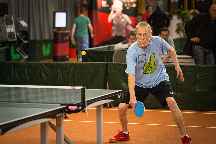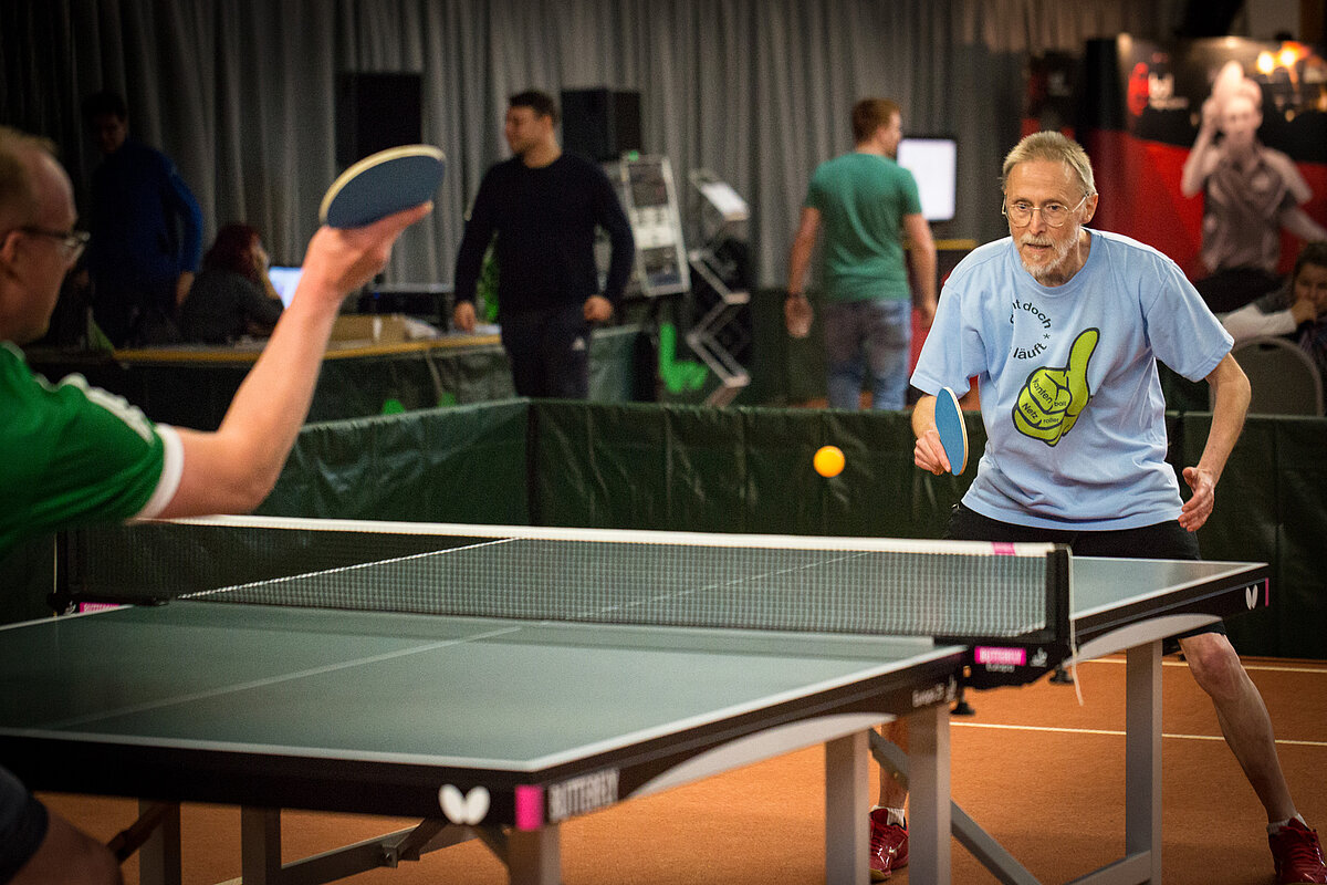 Wie in vielen Ländern dieser Welt fand auch in Deutschland das Qualifikationsturnier zur WORLD CHAMPIONSHIP OF PING PONG 2017 statt. 64 Spieler aus Deutschland waren zugelassen, standen in den Startlöchern, um im Sportpark Erfurt die Tickets zur „World Championship of Ping Pong“, die am 28./29. Januar 2017 im Alexandra Palace in London ausgetragen wird, zu ergattern. Dort geht’s dann richtig zur Sache, nämlich um 100.000 Dollar Preisgeld für die Sieger. Mit dabei in Erfurt am 19./20. November waren u. a. die Hochkaräter Ewgenij Milchin (Q-TTR:2230), Hao Mu (Q-TTR:2298), und Dwain Schwarzer (Q-TTR:2170). Mittendrin statt nur dabei wollten auch Alexander Döll (TTG Pellenz) und Bernd Schuler (TV Eintracht Cochem) sein. Als krasse Außenseiter angereist erlebten sie ein Knaller- Clickball-Wochenende in Erfurt. Damit soll nicht das Essen in der Pizzeria Fellini gemeint sein. Nein, als Perspektivspieler geht er dieser Tage wahrlich nicht mehr durch der 67 Jahre alte „Hexer“ von der Mosel. Ein taufrischer Emporkömmling sieht bei allem Respekt, doch anders aus so vielleicht wie Alexander Döll, „The Wall“ von der Nette? Ihre Leistungen hingegen cool, clever, klasse bei diesem Teilnehmerfeld. Doch zuvor mussten sie beim Last Chance Turnier, dem Qualifikationsturnier für die DM am Tag zuvor, die letzten freien Tickets zur Hauptrunde der DM lösen, das beiden problemlos gelang. Deutlich stärker besetzt die acht Vorrundengruppen der DM, doch auch diese Aufgaben meisterten beide souverän, und so sahen sie sich unverhoffter Dinge in der Runde der letzten 32-besten nationalen Clickballer. Doch das war noch nicht das Ende der Fahnenstange, denn sowohl „The Wall“ als auch der „Hexer“gewannen ihr Achtelfinalspiele: Alexander gegen Jürgen Leu (TTZ Sponeta Erfurt) und Bernd gegen Jan-Hendrik Düspohl ( Soester TV).