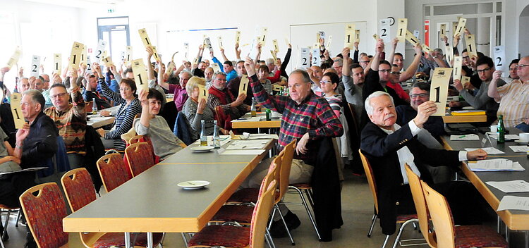 Einmütig reckten die Delegierten des Außerordentlichen Verbandstags des Tischtennisverbands Rheinland in der Römerhalle von Dichtelbach ihre grünen Karten in die Luft. „Damit kann ich feststellen, dass die Verschmelzung einstimmig angenommen ist“, sagte TTVR-Präsident Felix Heinemann um exakt 15.06 Uhr.