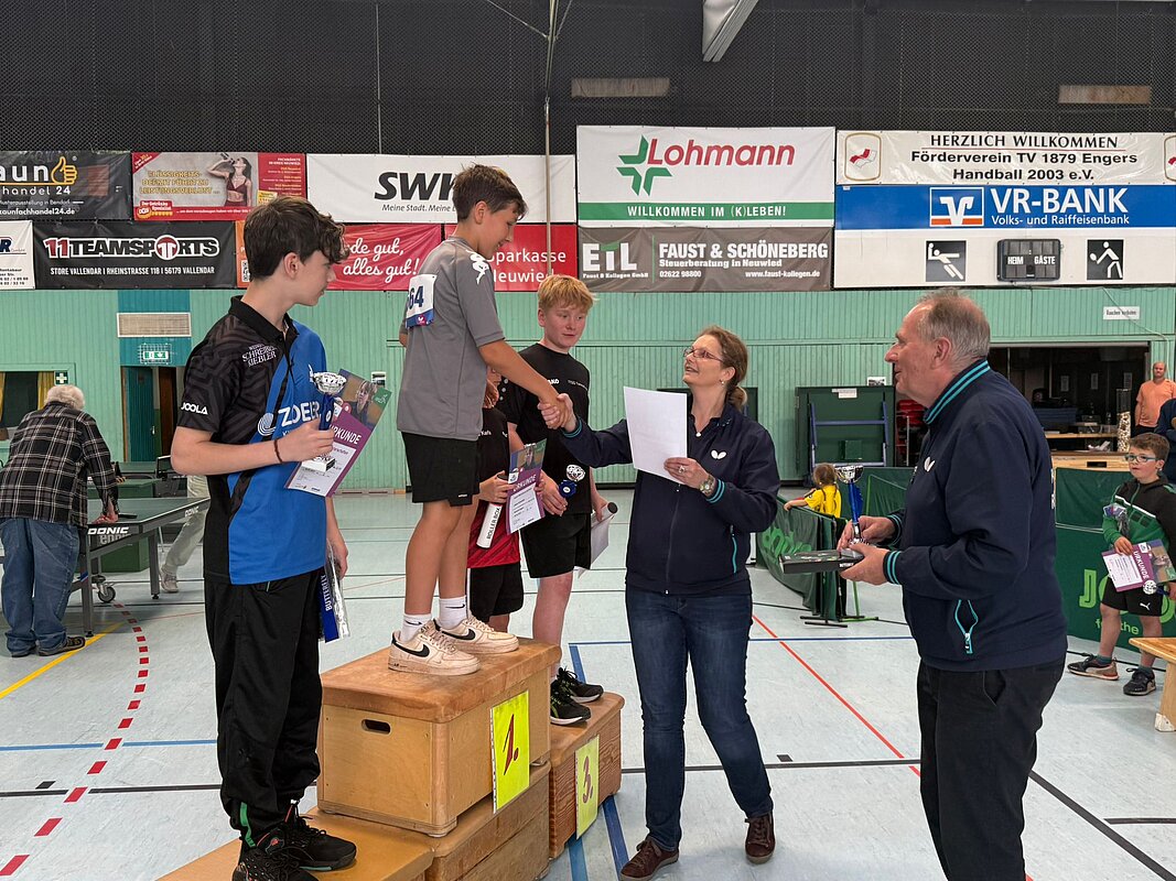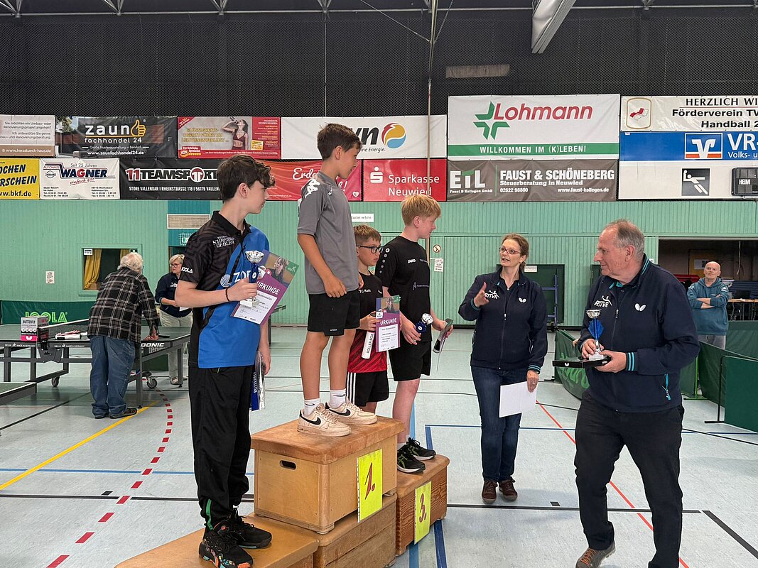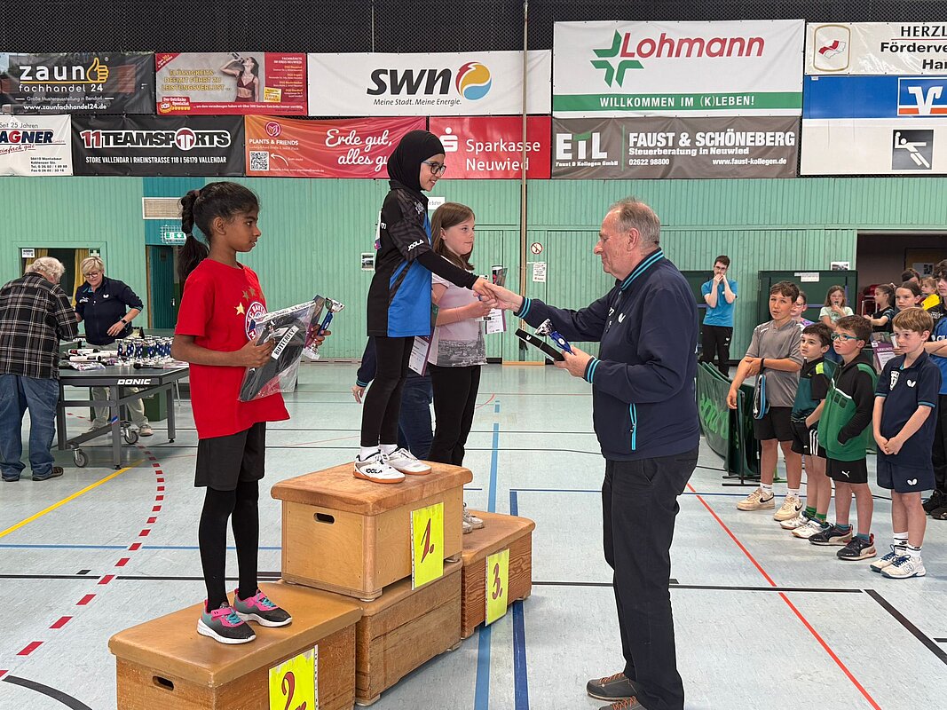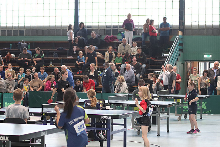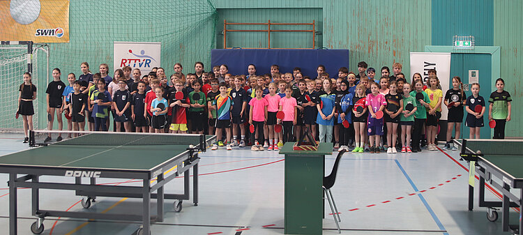 In der Sporthalle Engers, wieder hervorragend vorbereitet von der TTSG Torney-Engers, traten am 4. Mai 2025 insgesamt 90 Teilnehmer/Innen zum Verbandsentscheid der Minis an. Mitgekommen waren auch viele Eltern und Großeltern, Vereinsangehörige und Zuschauer, die auf der großen Tribüne Platz fanden. Anders als in den Vorjahren wurden die Sieger diesmal sogar in 3 Altersklassen für Mädels und Jungs gesucht. Neben den bisherigen Wettbewerben der Altersklasse 9/10 Jahre und 11/12 Jahre wurde erstmals auch in der Altersklasse bis 8 Jahre auf Verbandsebene eine Siegerin und ein Sieger ermittelt.
