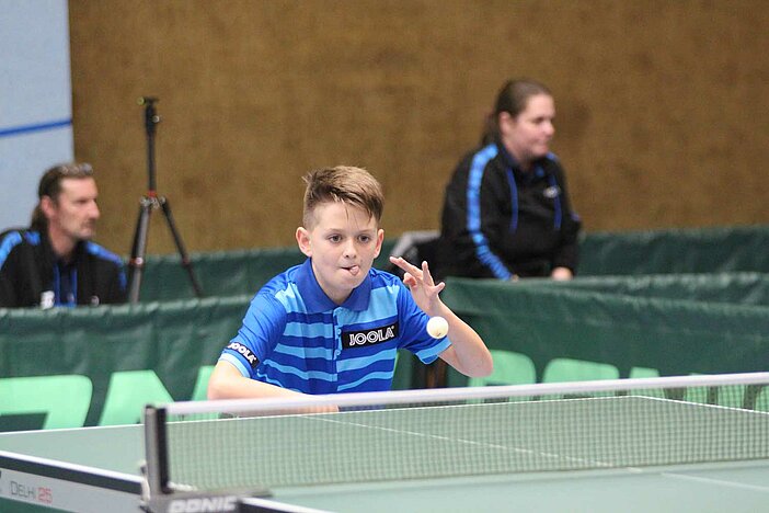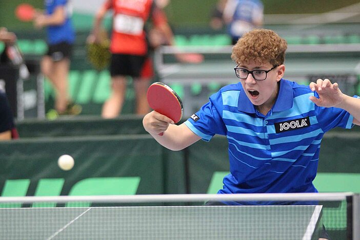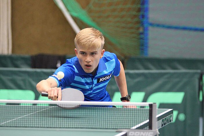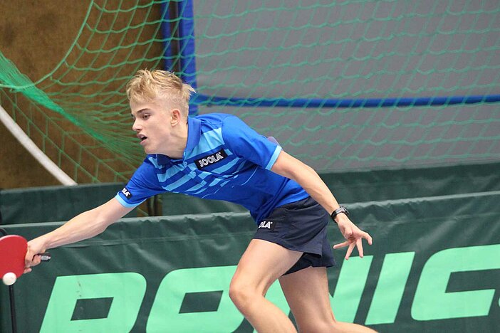 Für Elias war es das erste Mal, dass er bei einem Bundesturnier der Jungen 15 mitspielen durfte. Für ihn ging es in erster Linie darum, die Abläufe eines solchen Turniers kennen zu lernen und sich an das Spielniveau heranzutasten. In der Vorrunde konnte er bereits einen Satz gewinnen, in der Zwischenrunde dann gelang ihm im letzten Spiel ein wertvoller Sieg, um das Turnier mit einem persönlichen Erfolgsmoment abzuschließen.