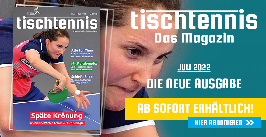 Der Juni war der Monat der Deutschen Meister. In Saarbrücken spielte die nationale Elite die Einzelmeister aus. Ganz vorne landeten Sabine Winter und Dang Qiu. Während für die Schwabhausenerin eine lange Durststrecke endete, setzte der Düsseldorfer seinen Höhenflug fort. tischtennis war in der Hermann-Neuberger-Sportschule vor Ort – und berichtet von den großen und kleinen Geschichten dieser DM. Zwei Wochen zuvor war Frankfurt Schauplatz des TTBL-Finals, in dem sich Borussia Düsseldorf im deutschen Classico gegen den 1. FC Saarbrücken-TT durchsetzte. Warum Timo Boll Gesprächsthema war, obwohl er keinen Punkt zum Sieg seiner Mannschaft beisteuerte, und warum das Endspiel einen Vorgeschmack auf die mediale Zukunft der TTBL lieferte, lesen Sie in der aktuellen Ausgabe. Außerdem steht im Materialtest mit dem „Quantum X Pro“ von Tibhar ein interessanter und farbenfroher Belag im Mittelpunkt. Und mit dem „Querspin“ ist einer der anspruchsvollsten Aufschläge Thema im Trainingstipp des VDTT.