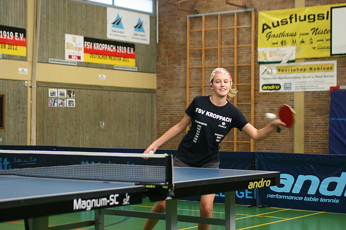 Die Saison 2013/14 hat nun auch für den FSV Kroppach nach dem Ausstieg aus der Damen-Bundesliga begonnen.Man startet mit 2 Damen-, 2 Herren- und 3 Jugendmannschaften in die noch junge Saison.Das Hauptaugenmerk hat man in Kroppach auf die Jugendarbeit gelegt,denn dort verstecken sich vielleicht die Talente von morgen,die man durch gezieltes Training fördern will.Zu diesem zweck verstärkte der FSV sein Trainerteam mit Yü Zimmermann,die in Kroppach keine Unbekannte ist,schliesslich spielte Yü einige Jahre für den Verein in der Bundesliga.Das Trainerteam wird komplettiert von Nina Schüchen und Elisabeth Klein.Mit diesen Trainerinnen wurde eine gute Lösung gefunden.Man sieht es vor Allem daran,mit welcher Freude und Ehrgeiz die Kinder an die Trainingsarbeit gehen und jedes Kind für sich an seiner Technik und Form arbeitet,um im Spielbetrieb gegen die Gegner bestehen zu können.Natürlich kommt auch der Spass nicht zu kurz,es wird auch viel gelacht,und einige Spieler aus den Seniorenmannschaften stellen sich gerne als Trainingspartner zur Verfügung.Allen voran ist hier das "Urgestein" Helmut Schüchen zu nennen,der es sich nicht nehmen lässt,so Manchen spielerisch in die Schranken zu weisen.Die Trainingszeiten der Jugend sind mittwochs und freitags jeweils von 18.30 bis 20.30 Uhr.Anschliessend trainieren die Seniorenmannschaften.