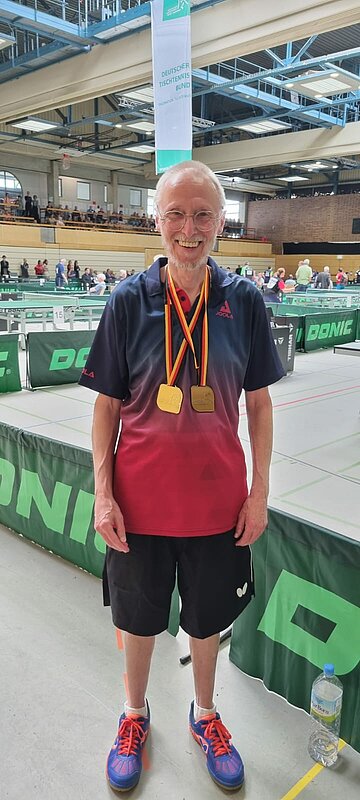 Bernd musste sich im Halbfinale ordentlich strecken beim knappen 5-Satz-Erfolg gegen Paul Beisler (ByTTV) bevor er sich im Finale der Altersklassen Senioren 70 deutlich gegen Dieter Jürgens (TTVSH) durchsetzte. Im Doppel gab er mit seinem Partner Gerd Werner (BaTTV) auf dem Weg ins Finale nur einen Satz ab. Im Finale stand ihnen die Kombination Beiser/Jürgens (ByTTV/TTVSH) gegenüber. Mit einem glatten 3:0-Sieg war das Double für Bernd perfekt. Und auch im Mixed mit Hannelore Dillenberger (TuS Himmighofen) schaffte er den Einzug ins Halbfinale, wo dann aber Endstation für die Paarung war.