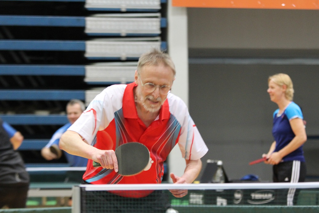 Ein wenig Pech hatte Heidi Wunner dagegen im Einzel. Denn im Endspiel war sie bei 2:0 Satzführung ganz nah dran an der Meisterschaft, mußte sich aber doch noch 9:11 im fünften Satz geschlagen geben. Silber ist dennoch ein schöner Erfolg, genauso wie Bronze für Bernd Schuler im Einzel Ü65. Der Cochemer führte in seinem Semifinale ebenso 2:0 nach Sätzen, konnte ein halbes Dutzend Matchbälle nicht verwerten und unterlag noch denkbar knapp.