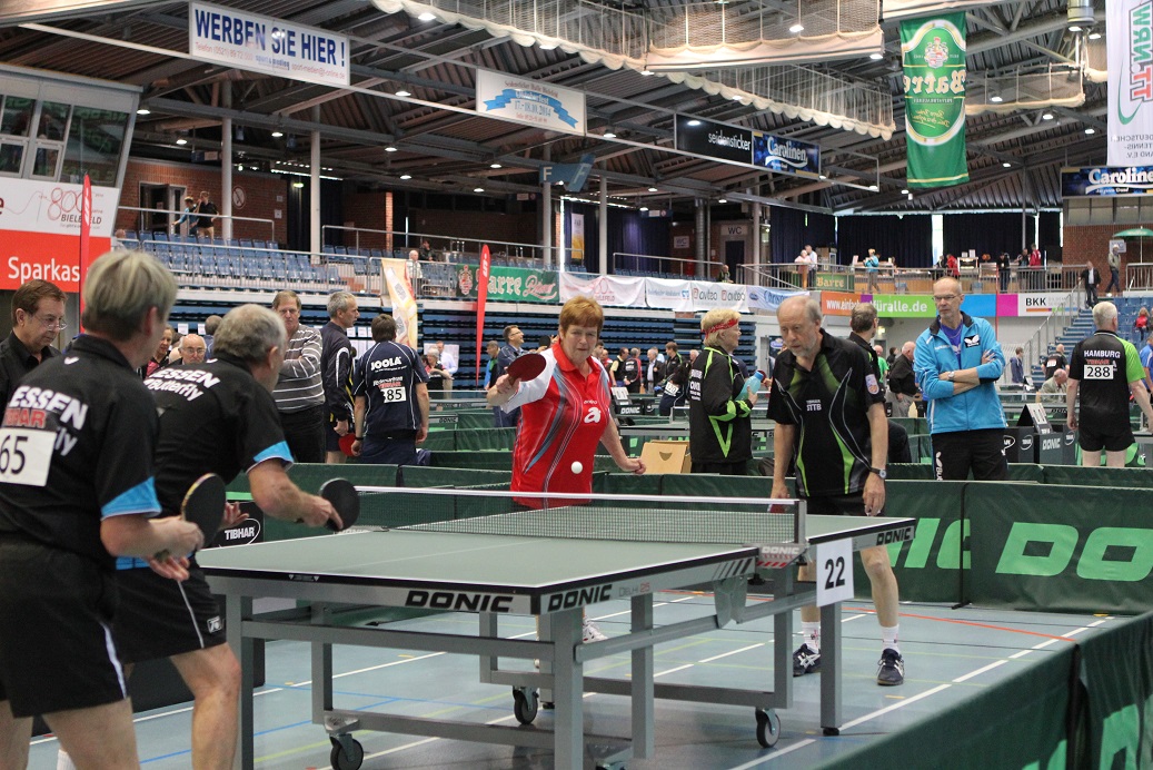 Aus Sicht der Teilnehmer/-innen aus dem TTVR überstrahlten natürlich die beiden Titelgewinne von Hannelore Dillenberger und Heidi Wunner alles am Wochenende in Bielefeld. Hannelore Dillenberger (Mühlbachtal) gewann die Doppelkonkurrenz Ü65 an der Seite von Christel Locher (HeTTV) ebenso souverän wie Heidi Wunner (Rheinbreitbach) mit Margret Tepper (WTTV) den Wettbewerb Ü75. Sie siegten in den Finals jeweils ohne Satzverlust. Herzlichen Glückwunsch zu diesen Erfolgen.