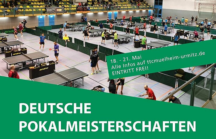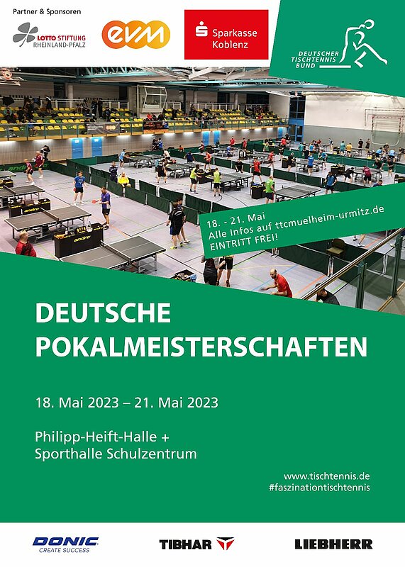„Berlin, Berlin, wir fahren nach Berlin“, schallt es Jahr für Jahr durch die Fußballarenen der Republik. Bekanntlich ist das Olympiastadion in Berlin alljährlich Schauplatz des DFB-Pokal Endspiels und jeder Zuschauer assoziiert mit den Fangesängen den Wunsch der Fans das Endspiel zu erreichen. „Mülheim-Kärlich, Mülheim-Kärlich, wir fahren nach Mülheim-Kärlich!“ schallt es hingegen in diesem Jahr durch die Tischtennishallen Deutschlands. Aber was ist damit gemeint? In Mülheim-Kärlich finden vom 18.05. – 21.05.2023 die Deutschen Pokalmeisterschaften statt. Die Philipp-Heift-Halle und die „Apfelsinenkiste“ sind somit das Olympiastadion für die Vereinsmannschaften bis Verbandsliga im Jahre 2023. Durchführer ist der TTC Mülheim-Urmitz/Bhf. Der erfahrene Turnierveranstalter aus Mülheim-Kärlich wurde bereits im Jahr 2022 seitens des Tischtennisverbandes Rheinland-Rheinhessen angesprochen. „Die Voraussetzungen in Mülheim-Kärlich sind perfekt. Zwei Hallen in unmittelbarer Nähe und eine gute Anbindung in alle Richtungen“, erklärte Vizepräsident Sport Marcel Mareien die Auswahl des TTC. „Wir haben bisher noch nie ein Turnier in dieser Größenordnung durchgeführt. Anlässlich unseres diesjährigen 70-jährigen Vereinsjubiläums haben wir uns jedoch dazu entschlossen, diese Herausforderung anzunehmen,“ berichtet TTC-Vorstandsmitglied Jens Koch. Ihm, seinen Vorstandskollegen und den zahlreichen Helferinnen und Helfern steht ein Mammutprogramm bevor: Neben vier Tagen in beiden Hallen mit insgesamt 32 Tischen, steht am Freitagabend auch eine Playersnight an. „Die Vorbereitungen laufen sehr gut. Wir sind guter Dinge, dass es für alle Beteiligten eine sehr schöne Veranstaltung wird und sich alle in Mülheim-Kärlich wohlfühlen werden“, berichtet Koch voller Vorfreude.