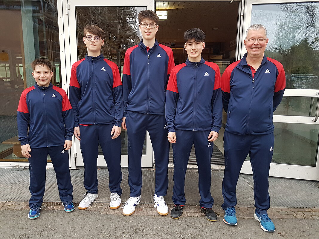 Als einer der Mitfavoriten ging die Jugend-15-Mannschaft ins Turnier. Nach zwei Siegen zum Turnierstart, unterlag das Team im Spiel um den Gruppensieg deutlich mit 4:0 gegen Niedersachsen. „Nicht unser bestes Spiel an diesem Wochenende“, analysierte Coach Torsten Feuckert die Leistung seines Teams, welches sich dann jedoch im Viertelfinale wieder steigern konnte und mit einem Sieg über Thüringen ins Halbfinale einzog. Hier war die „Übermannschaft“ aus dem WTTV eine Nummer zu groß. Immerhin schaffte Ole Kaspers den Ehrenpunkt zum zwischenzeitlich 1:1. Bemerkenswert dabei: Die Jungs aus dem WTTV gaben im gesamten Turnier nur 2 Einzel ab.