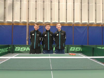 Aber die guten Vorrundeneindrücke stärkten das Selbstvertrauen für das wichtigste Spiel im ganzen Turnier. In der Zwischenrunde wartete die Auswahl aus Hamburg. „Ein Fifty-Fifty-Spiel“, so Stefan Elsen. Das entschied letztendlich, wer ins Viertelfinale einziehen sollte. Mattes Häusler und Tobias Werschkun gewannen ihre ersten Einzel souverän und drehten das Spiel nach der Niederlage von Aaron Emmerich. Aber so stark sie im Einzel auftraten, so unglücklich agierten die beiden im Doppel und verloren deutlich in vier Sätzen. Beim Stand von 2:2 konnten aber Mattes und Tobias gleich wieder fokussiert in die zweite Einzelrunde gehen. Mit erneut zwei Siegen der beiden war der 4:3-Erfolg über Hamburg unter Dach und Fach und das Viertelfinale gebucht. „Besonders Tobias hat super Leistungen über das ganze Wochenende gebracht“, lobte Trainer Stefan Elsen, „während Mattes manchmal etwas passiv agierte. Aber im entscheidenden Spiel gegen Hamburg hat er die Nerven behalten.“ Der Sieg fand auch sonst Beachtung: „Der WTTV-Trainer Schulte-Kellinghaus kam zu mir und war total überrascht, dass wir dieses Spiel gewonnen haben“, konnte Elsen berichten.