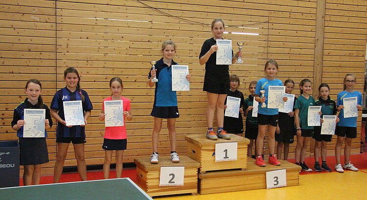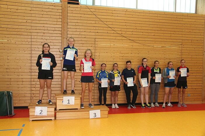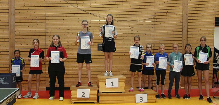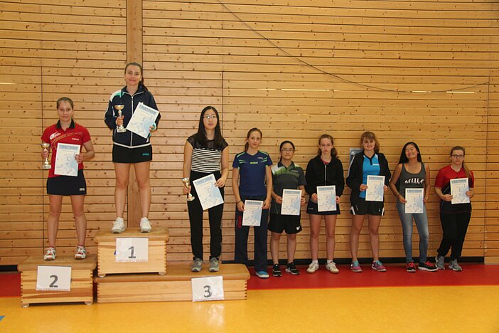 Johanna Pfefferkorn, Meng Li (beide TTC Mülheim-Urmitz/Bhf., pers. Startplätze), Valerie Smeljanski (TSG Heidesheim), Larissa Berger (TTC Mülheim-Urmitz/Bhf.)