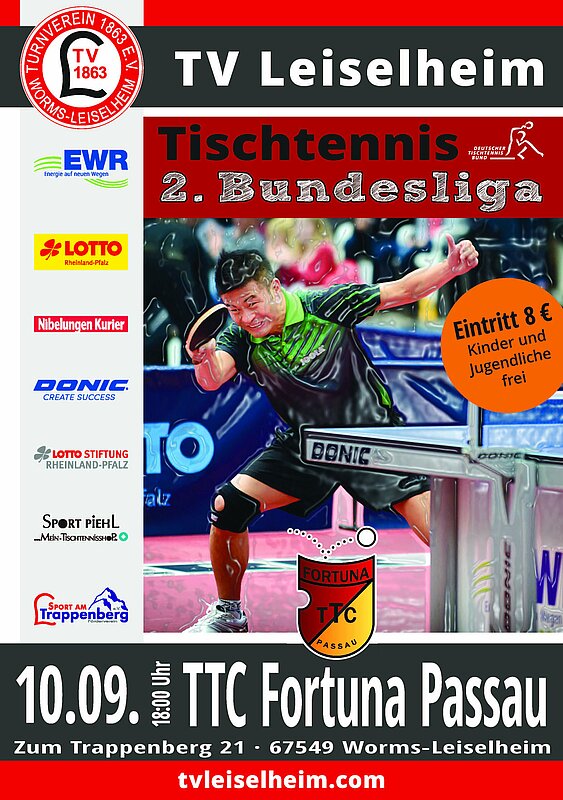 TV Leiselheim vs. TTC Fortuna Passau am Samstag, 10.September 2022, 18:00 Uhr