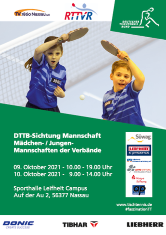 Am 9. und 10. Oktober 2021 starten die Auswahlmannschaften der Verbände mit ihren Mädchen- und Jungenmannschaften bei der DTTB-Sichtung Mannschaft. 14 Verbände gehen mit ihren besten Mädchen und Jungen aus dem Tischtennis-Leistungsbereich an den Start und präsentieren ihre Talente für den Jugend-Leistungskader des DTTB.