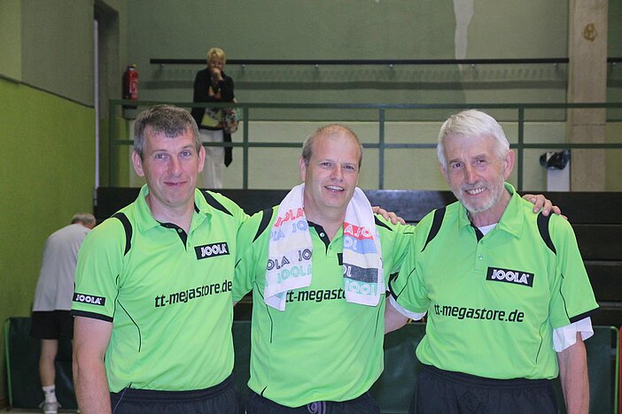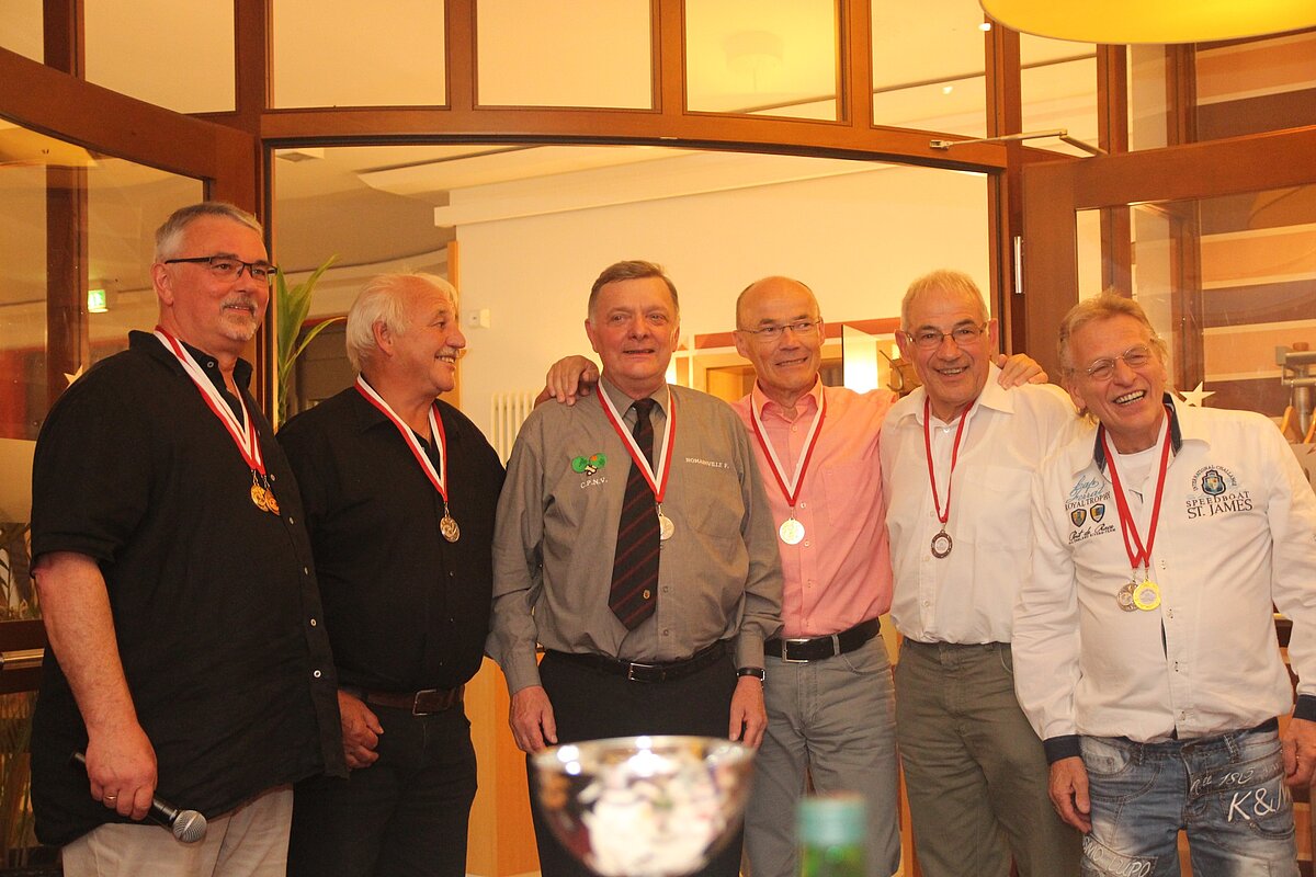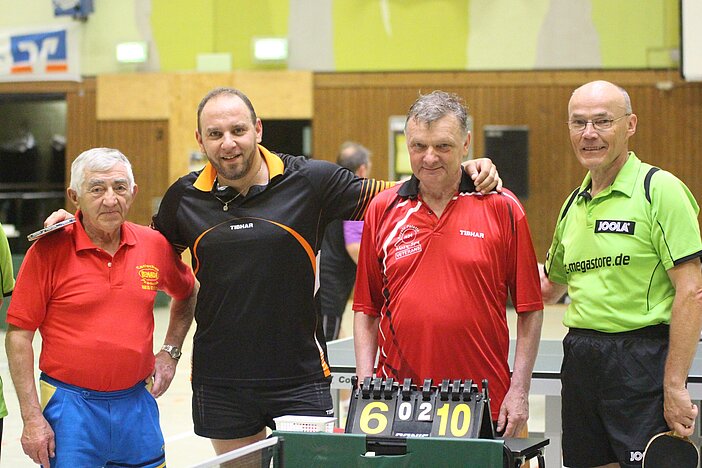 Herausragend die Leistung der Eifeler in der Ü 65 Gruppe, Werner Dörr, Gerd Hilgert und Josef Hoffmann, die mit 7:0 Spielen und 21:7 Sätzen wesentlich zu diesem Ergebnis beitrugen. Ebenso klar das Ergebnis der Eifeler in der Ü 70 mit den für TTVR-Tischtenniskenner schillernden Namen Volker Große Meininghaus, Gerhard Mittler und Helmut Scharff, die mit 6:1 Spielen und 18:7 Sätzen die Klasse für sich entscheiden konnten. Namur mußte sich mit dem äußerst knappen Gesamtergebnis von 92 zu 96 Sätzen und 23 zu 24 Spielgewinnen geschlagen geben. Dank an die Turnierleitung Maic Herget und Oberschiedsrichter Jürgen Föst.
