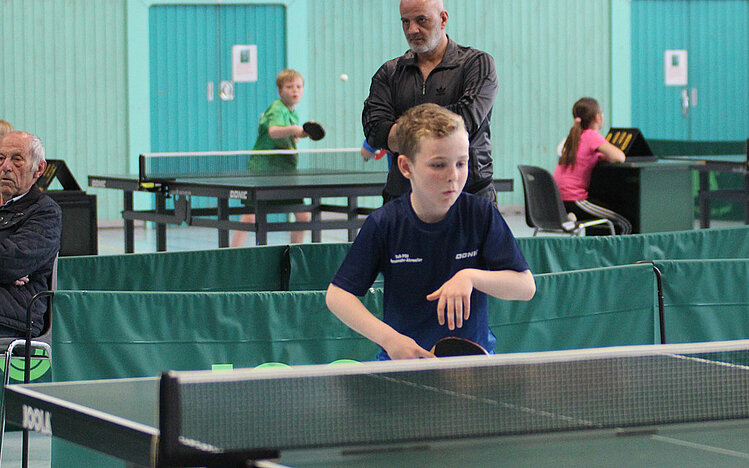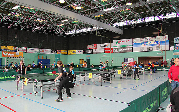 Das traf auch auf die Eltern, Geschwister und teilweise auch Großeltern zu, die sich auf der großen, sechsstufigen Tribüne in Engers zum Zuschauen versammelt hatten. Begeistert wurde gejubelt und angefeuert, in den Spielpausen dann aber beispielsweise auch mal eine Runde Uno oder Fangen gespielt. So harmonisch wie abseits des sportlichen Geschehens ging es auch an den Tischen zu. Lautes Schreien, Bandentreten oder Schlägerwürfe, wie man sie ja leider manchmal bei Turnieren der „Großen“ erleben muss, waren in Engers nicht an der Tagesordnung. „Heute ist so ein Tag, wo es eigentlich keinen Oberschiedsrichter braucht. Das bekommt die Turnierleitung auch alleine geregelt“, stellte Oberschiedsrichter Markus Hoffmann fest, der lediglich das ein oder andere Spiel am Tisch beobachtete, ansonsten aber einen ruhigen Tag verlebte.