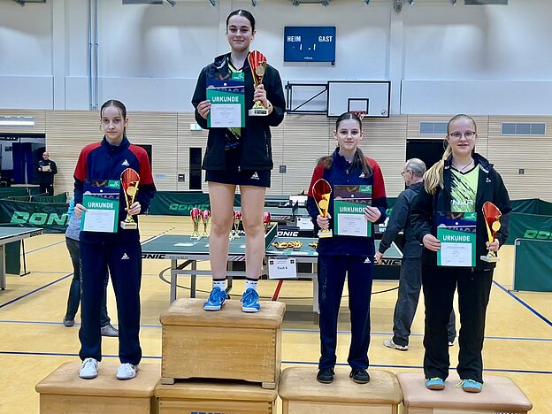 Ebenfalls ganz Oben auf dem Podest stand Johanna Braun (TTC Wirges), die gemeinsam mit Lisa Wang (STTB) die Goldmedaille im Mädchen 19 – Doppel gewann.