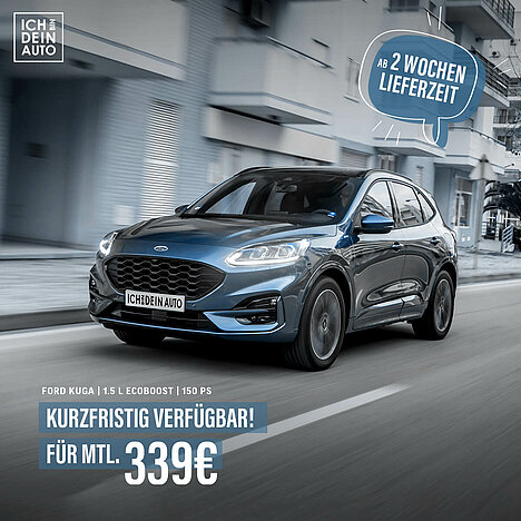 Mit unserem Partner ASS – Ich bin Dein Auto sitzt Du ganz schnell in Deinem Ford Kuga. Im 12-Monats-Neuwagen-Abo bekommst Du den schicken SUV schon für mtl. 339 €. Da ist alles drin, Du musst nur noch tanken!