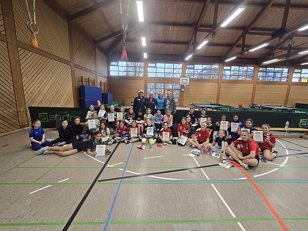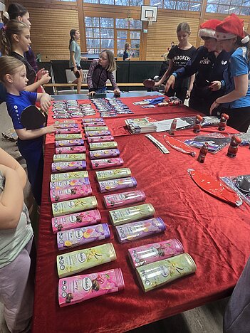 Alle Teilnehmerinnen freuten sich über liebevoll zusammengestellte Preise: Pokale, Urkunden, Nikolausfiguren, Sachpreise des RTTVR sowie zusätzliche Überraschungen. Der Drogeriemarkt dm Nieder-Olm unterstützte das Turnier erneut mit beliebten Goodies, die bei den Mädchen großen Anklang fanden.