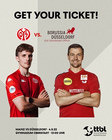 Werde Teil des Publikums, wenn die 05er Jungs gegen Timo Boll und Co. alles reinhauen und für ein einmaliges Sporterlebnis sorgen werden.
