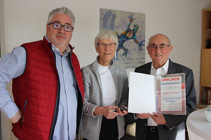 Heide Wunner, aus Anlass ihres 80igsten Geburtstages mit der Siegernadel Gold 60 Jahre geehrt.