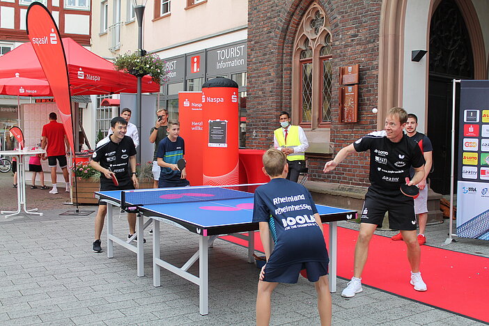 Rund um die Mannschaftsvorstellung wurde den zahlreichen Fans und Zuschauern ein abwechslungsreiches Programm geboten. Das DTTB-Schnuppermobil, das vom TTC Ausrüster Butterfly bestückt ist, war ebenso vor Ort wie auch Kaderspieler*innen des Tischtennisverbands Rheinland/Rheinhessen (RTTVR), die unter anderem einen Showkampf mit den Bundesligaprofis im Doppel zeigten. Bei herrlichem Wetter spielten Fans, Tischtennis-Kids und die Profis an den großen und auch kleinen aufgestellten Tischen. Einfach so ohne Zwang und „nah am Publikum“.