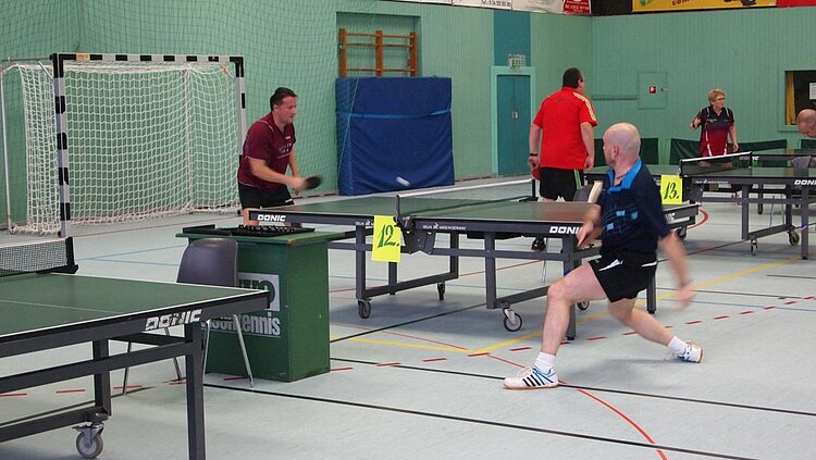 Ü70 wurde zur Meisterschaft des Gastgebers. Denn im Endspiel standen zwei Spieler der TTG Torney/Engers. Josef Link kennt die tückischen Schnittvarianten von Helger Ohlig zu gut und konnte sich den Rheinlandmeistertitel sichern. Kurt Reuther (Monzingen) gewann die Klasse Ü75 vor Winicjusz Mikler (Talling). Und Ü80 war Günter Krauß (Torney/Engers) einmal mehr ganz oben. Im letzten Jahr ist er in Neuseeland Weltmeister in Doppel geworden. Jetzt holte Krauß sich in heimischer Halle den Rheinlandmeistertitel vor Egon Schwickert (Kirchberg/Rhaunen).