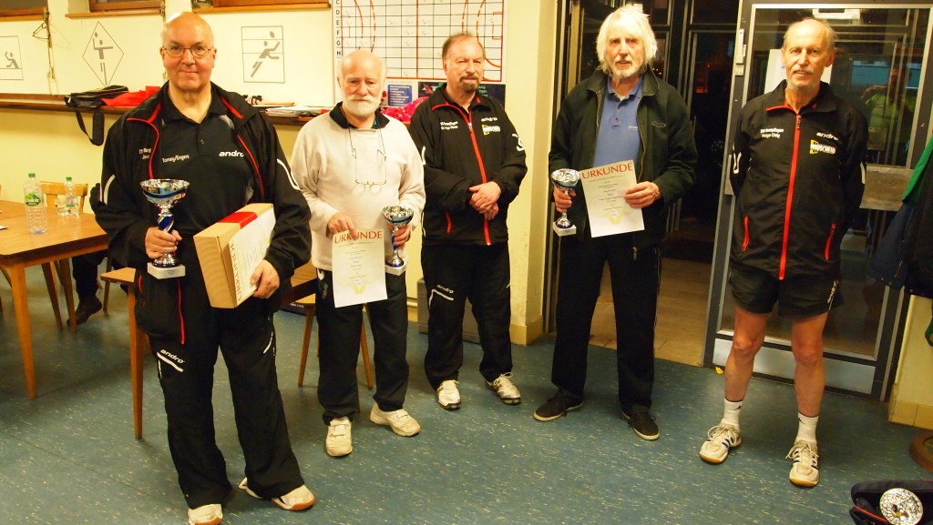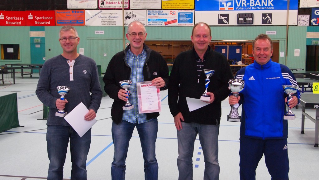 In der Klasse Ü50 setzte im Halbfinale das „Favoritensterben“ ein. Zunächst hatte Harry Jaensch (Bad Neuenahr-Ahrweiler) Thomas Schlangen (Höchstenbach/Mündersbach) bezwungen. Dann schaltete Frank Best (Feldkirchen) mit Markus Ströher (Höhr-Grenzhausen) den souveränen Ranglistensieger aus. „Frankie“ Best lieferte eine wirklich tadellose Leistung ab und hatte auch in Endspiel seine Nerven im Griff. Taktisch und spielerisch einwandfrei besiegte er Harry Jaensch im Endspiel in vier Sätzen. Die Ü50-Konkurrenz war mit 28 Teilnehmern die mit Abstand am stärksten besetzte Klasse.