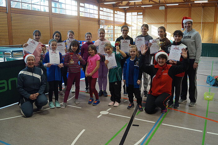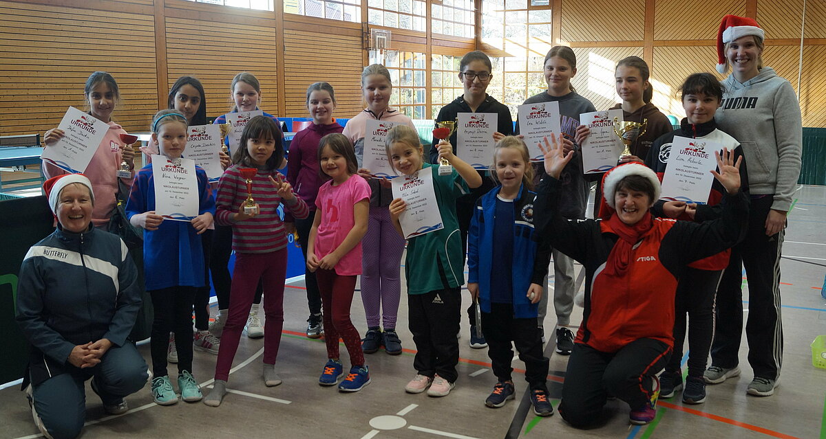 Der Abschluss für das Mädchen-Tischtennis in diesem Jahr war das vorweihnachtliche Nikolausturnier. Am 10. Dezember trafen sich 16 Mädchen aus dem Verbandsgebiet in Klein-Winternheim und spielten um die Schoko-Weihnachtsmänner.