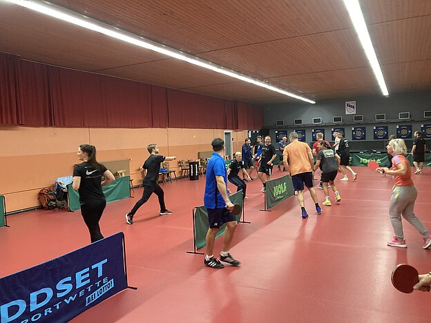 22 Lehrkräfte aus ganz Rheinland-Pfalz nahmen an der Fortbildungsveranstaltung zu den Themen Spiel- und Übungsformen zur Schläger- und Ballgewöhnung, Einführung Tischtennis ohne Tisch und am Tisch, TT-Sportabzeichen und Einführung und Training von Schlagtechniken mit Balleimertraining und methodischen Übungsreihen teil.