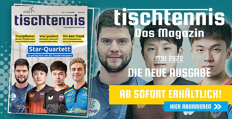 Lesen Sie in der Mai-Ausgabe mehr über den Transfercoup des TTC Neu-Ulm, das Saison-Finale in der Damen-Bundesliga und den Boom von Tischtennis als Freizeitsport.