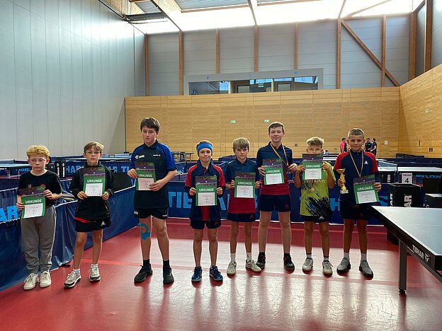 Für die zwei Newcomer Luca Hoffmann (SV Trier-Olewig) und David Rünz (TTC Wirges) war es das erste überregionale Turnier und beide bestätigten ihre Nominierungen mit ordentlichen Leistungen. Dreimal musste Luca Hoffmann in den fünften Satz und jedes Mal verließ er als Sieger den Tisch! Diese starke mentale Leistung bescherte ihm einen sehr ordentlichen 4. Platz in der Endabrechnung. Nur einen Platz dahinter landete Abwehrspieler David Rünz, der einige spektakuläre Ballwechsel zeigen konnte und besonders mit seinem Wechsel von Abwehr zu Angriff überzeugen konnte.