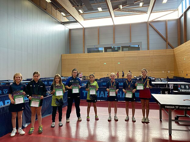 Paula Beck konnte sich über den 2. Platz freuen. Sie hatte zwar gegen die Verfolgerinnen einige schwierigere Situationen zu überstehen, setzte sich aber letztlich immer durch. Am knappsten ging es dabei gegen Theresa Zabel (TV Laubenheim) zu, als sie sich in diesem RTTVR-internen Zweikampf im fünften Satz durchsetzen konnte. Die Rheinhessin sicherte sich wiederum den 3. Platz und sorgte dafür, dass die Medaillenränge bei den Mädchen komplett in Hand des RTTVR blieben.