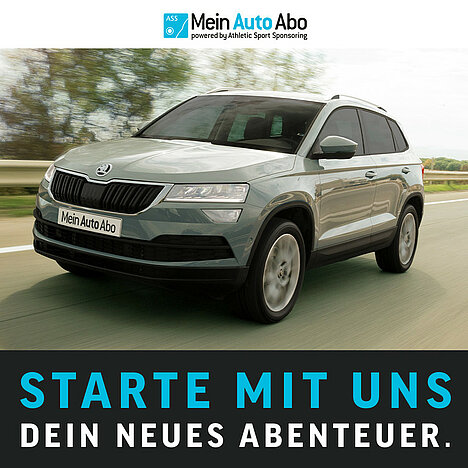 Starte mit unserem Partner ASS Athletic Sport Sponsoring Dein neues Abenteuer. Mit dem Neuwagen-Abo und dem Skoda Karoq ist das gar kein Problem. Für mtl. 389 € kann’s losgehen. Wie immer: Alles drin, außer tanken.