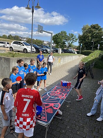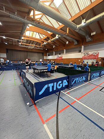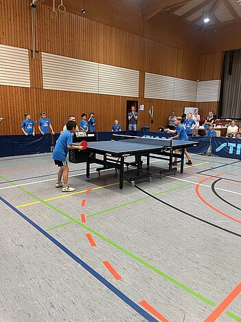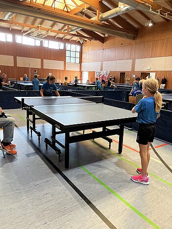 Der TV Ober-Olm hatte am Sonntag alles perfekt vorbereitet. Neben einer super ausgestatteten Halle mit sieben Tischen und vielen Banden, wurde auch ein kleiner Funpark zum Ablegen des Sportabzeichens und eine eigene ausgedachte Eis-Pong-Challenge, bei der die Gewinner*innen ein Eis gewinnen konnten, aufgebaut. So durften sich die 27 angemeldeten minis neben dem eigentlichen Turnier auf ein tolles Rahmenprogramm freuen, welches nicht nur die Kleinsten, sondern auch Geschwisterkinder, Freunde und die Eltern nutzten.