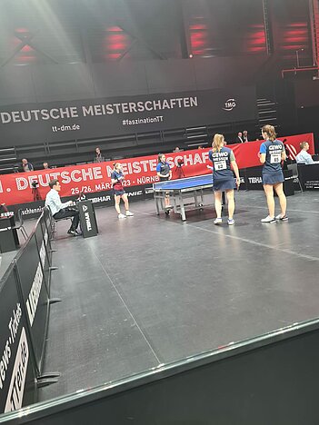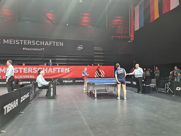 Auch der Präsident des Bayerischen Tischtennis-Verbands war hoch zufrieden. "Die Halle hier in Nürnberg ist ideal für unseren Sport. Sie hat die optimale Größe, und die Zuschauer sitzen nah am Geschehen“, so Konrad Grillmeyer. Davon konnten sich auch Johanna Braun (TTC Wirges) und Nicolas Flügel überzeugen. Die beiden Verbandsmeister des RTTVR waren in Nürnberg am Start und spielten zum ersten Mal vor großer Kulisse. „Das war schon etwas sehr besonderes“, berichtet Johanna nach der Veranstaltung. Sportlich verlief es für die Westerwälderin leider wie erwartet: Gegen 1. Liga Spielerin Franziska Schreiner (HeTTV) konnte sie nur Phasenweise mithalten und musste eine 0:4 Niederlage verkraften. Kein Beinbruch. Die Freude über das Erlebte überwiegt.