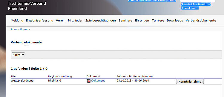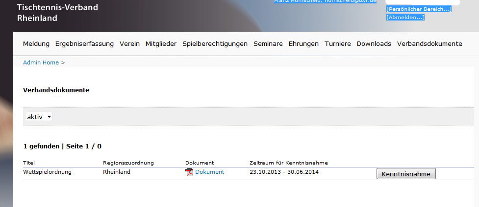 • Verbandsdokumente sind per Definition wichtig. Es werden an dieser Stelle keine Schriftsätze bereitgestellt, deren Kenntnisnahme im vereinsseitigen Ermessen liegt. Insofern liegt es in Ihrem Interesse, diese Dokumente nicht nur ‚abzuhaken‘