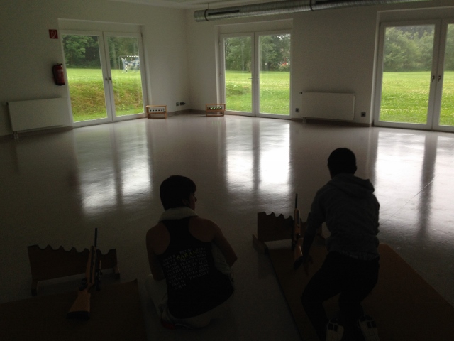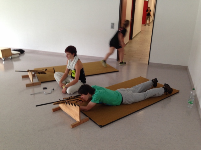 Nichts als Regen am Tag 5 im Feriendorf Inzell. Trotz Regen wurde heute der Biathlon-Wettkampf durchgeführt. Es wurden drei Runden gelaufen und nach der ersten und zweiten Runde je fünf Schuss mit Lasergewehren liegend abgefeuert.