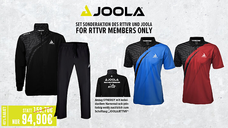 Joola bietet gemeinsam mit dem RTTVR und dem Tischtennisshop Spin & Speed ein attraktives Setangebot, welches ab sofort bis 28.02.2023 bestellt werden kann. Eine Auslieferung ist bis Mitte März geplant