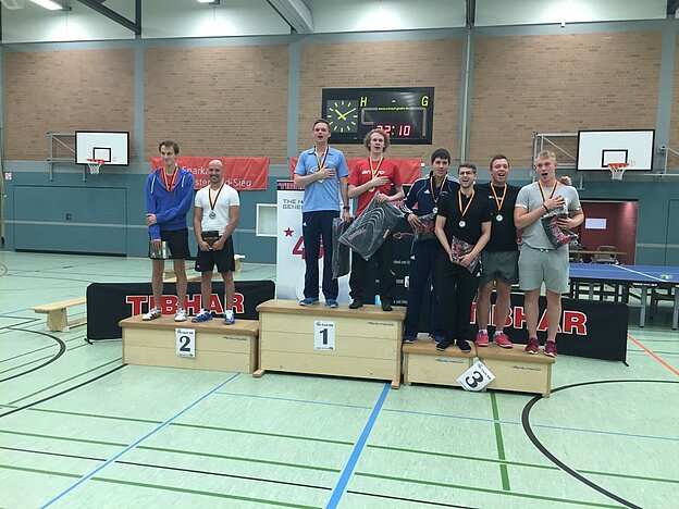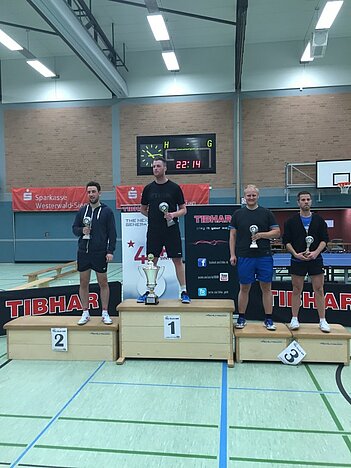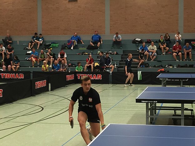 Die Bezeichnung WM hat das Turnier auch verdient. Denn zumindest Mitteleuropa steht mittlerweile im Zeichen der 4! Aus Frankreich, Polen, Niederlande, Luxemburg – und natürlich aus großen Teilen des DTTB waren Spieler/-innen nach Altenkirchen gekommen. So zum Beispiel Przemek Sliwinski. Er spielt in Polen in der dortigen Regionalliga Tischtennis und war jetzt mit zwei Freunden 800km aus Wroclaw gereist, um WM-Luft zu atmen. „Es ist total verrückt. Wir haben vor zwei Wochen zum ersten Mal Vierertisch gespielt, ein paar Videos gedreht und hierhin geschickt. Dann haben wir uns spontan entschlossen mitzuspielen – und jetzt sind wir hier. Aufgrund unserer Facebook-Videos haben uns fast alle hier erkannt. Es macht großen Spaß und wir genießen es hier!“