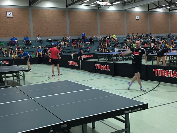 Ermöglicht hat das ebenso die ASG Altenkirchen als durchführender Verein. 20 Helfer konnte Abteilungsleiter Uwe Asbach allein am letzten Donnerstag zum Aufbau bzw Zusammenbau der Tische stellen. Das hat vier (!) Stunden gedauert, aber am Sonntag Nachmittag wusste er, dass sich der Aufwand gelohnt hatte: „Es ist einfach Klasse, was hier passiert. Toll zu sehen, wie alle aus purer Lust auf die Bälle hauen!“ Uwe Asbach, das Altenkirchener TT-Urgestein, war vom Vierertisch fasziniert. Der ursprüngliche Spaßgedanke ist nämlich noch längst nicht verflogen. „Hier ist noch viel mehr möglich“, fügte er vielsagend hinzu und ließ durchblicken, dass die ASG durchaus dauerhafter Partner der WM werden könnte.