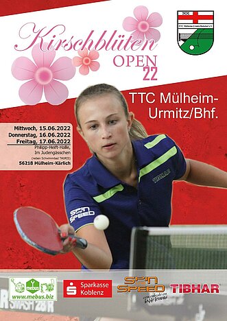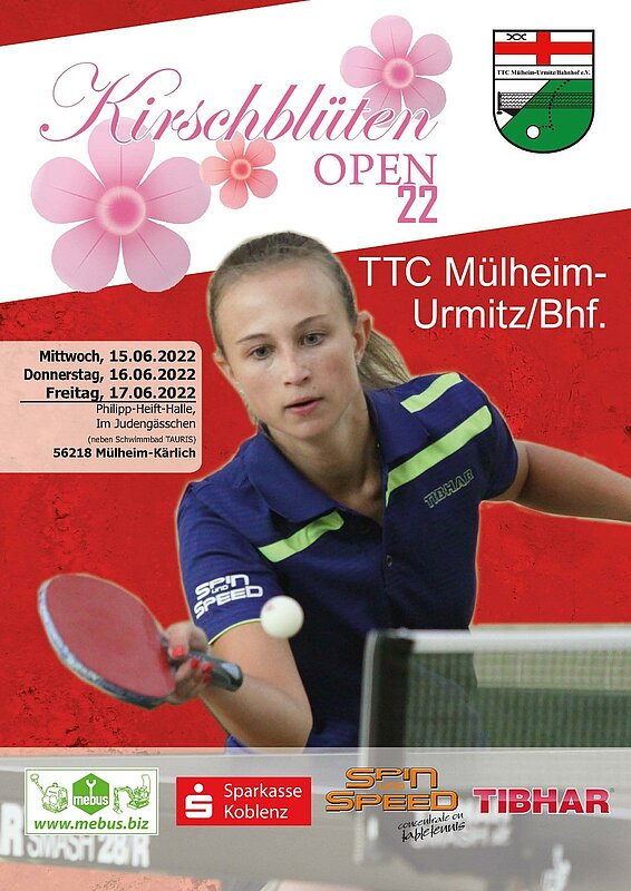 Wie so viele Veranstalter, musste auch der TTC Mülheim-Urmitz/Bhf. zwei Jahre in Folge sein Weihnachtsturnier Pandemie bedingt absagen. Um die vielen Tischtennisspielerinnen und Tischtennisspielern, die jährlich zur Weihnachtszeit den Weg in die Halle finden, wieder einmal in Mülheim-Kärlich begrüßen zu können, haben sich die Männer und Frauen des TTC eine Alternative einfallen lassen: Die Kirschblüten Open 2022. Unter der Schirmherrschaft der Kirschblütenkönigin Marina I. lädt der TTC Mülheim-Urmitz/Bhf. alle Tischtennisliebhaber*innen vom 15.06. – 17.06.2022 in die Philipp-Heift-Halle ein, um ein paar schöne Stunden mit der großen Tischtennisfamilie zur verbringen. Highlight ist wie immer das Vorgabeturnier, welches am Mittwoch, 15.06.2022 stattfinden wird.