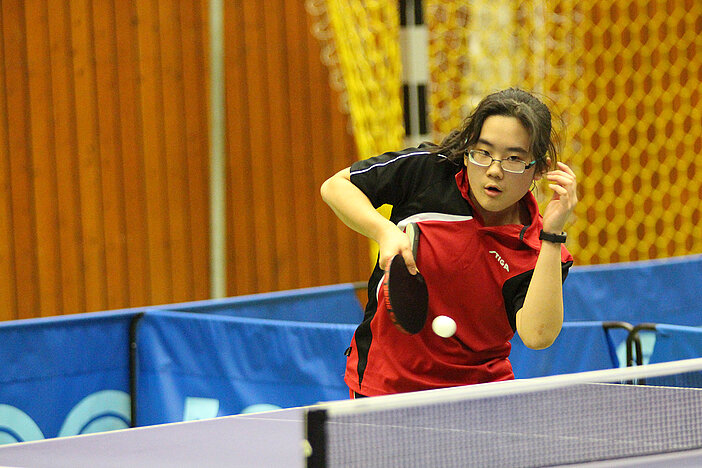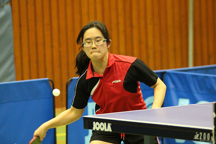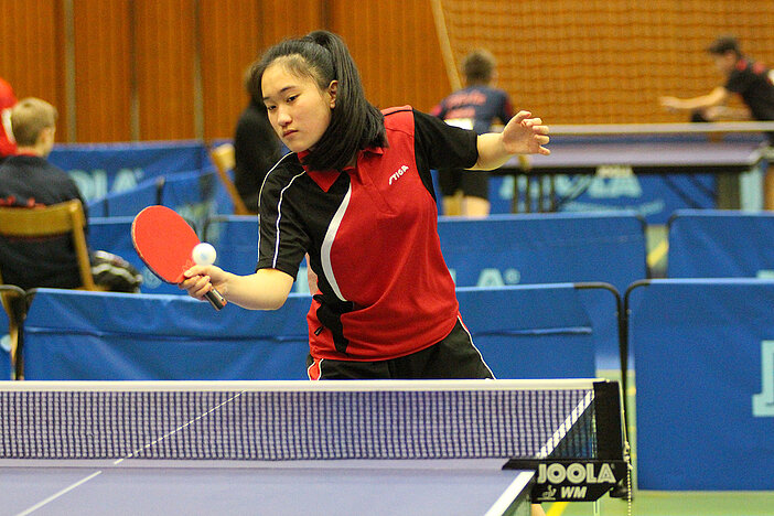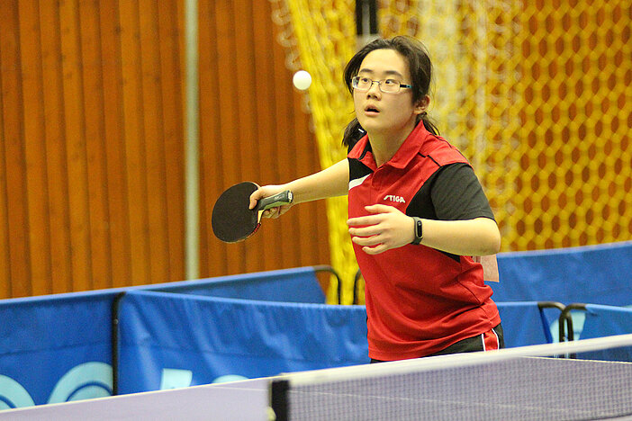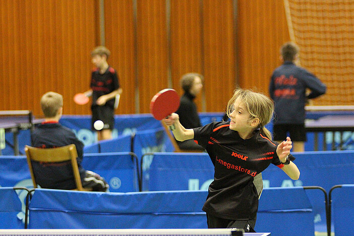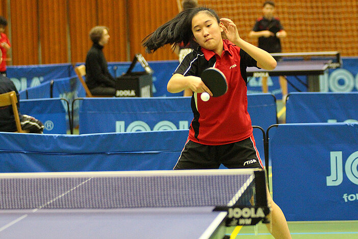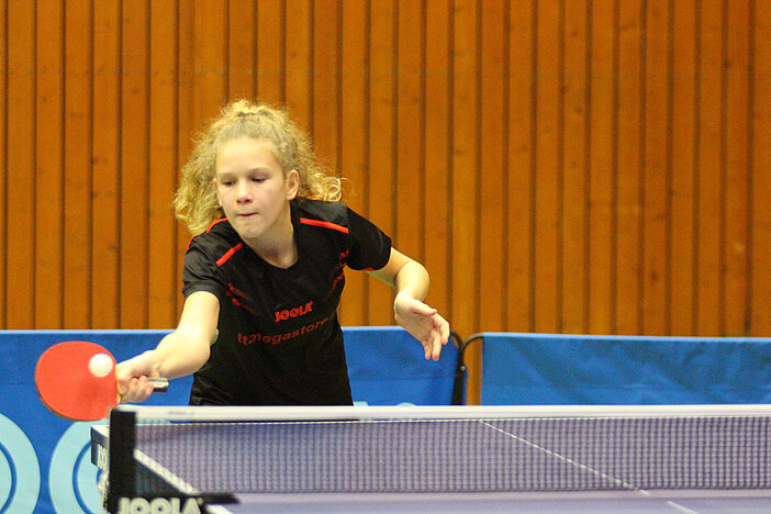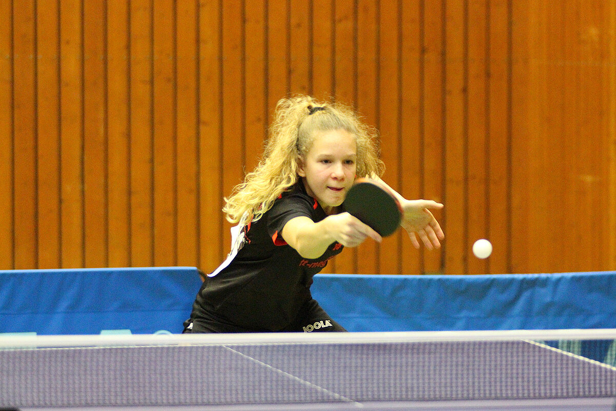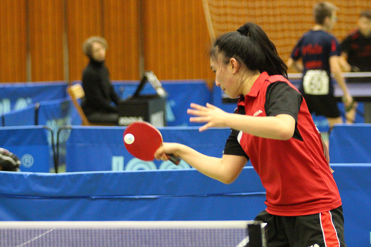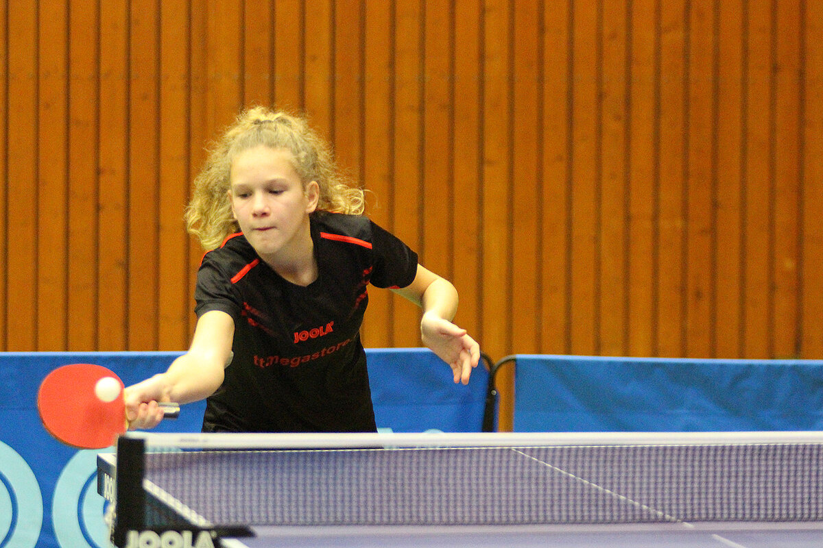 Auch bei den Mädchen entschied das vereinsinterne Duell bereits in der ersten Runde über den Turniersieg. Hier setzte sich im Duell der beiden für den TTC Mülheim-Urmitz/Bhf. startenden letztlich Layla Eckmann souverän gegen Johanna Pfefferkorn durch. Ilsa Krebs (ebenfalls TTC Mülheim-Urmitz/Bhf.; bereits für die Deutschen Schülermeisterschaften qualifiziert) und Shuting Jiang sollten erste Erfahrungen auf dieser Ebene sammeln. Während Ilsa bereits zwei Siege verbuchen konnte, reichte es für Shuting leider noch nicht zu einem Spielgewinn.