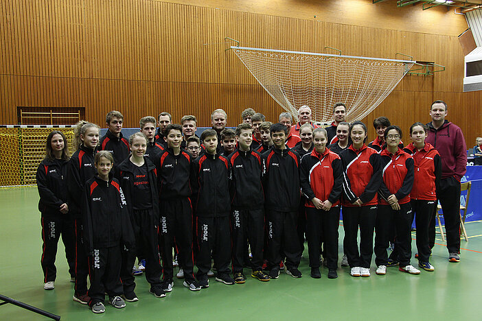 bei den Deutschen Jugendmeisterschaften am 21./22.04.2018 in der DTTB-Region 6 Max Bury, Tobias Sältzer, Layla Eckmann und Johanna Pfefferkorn.