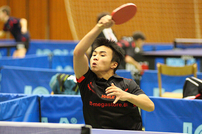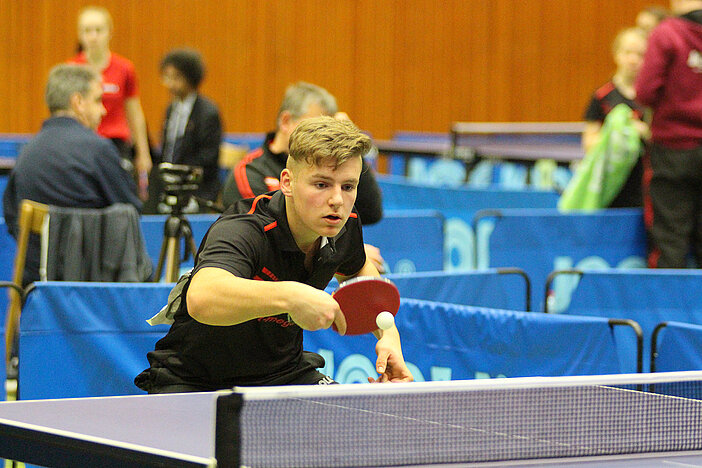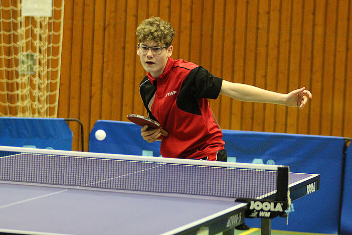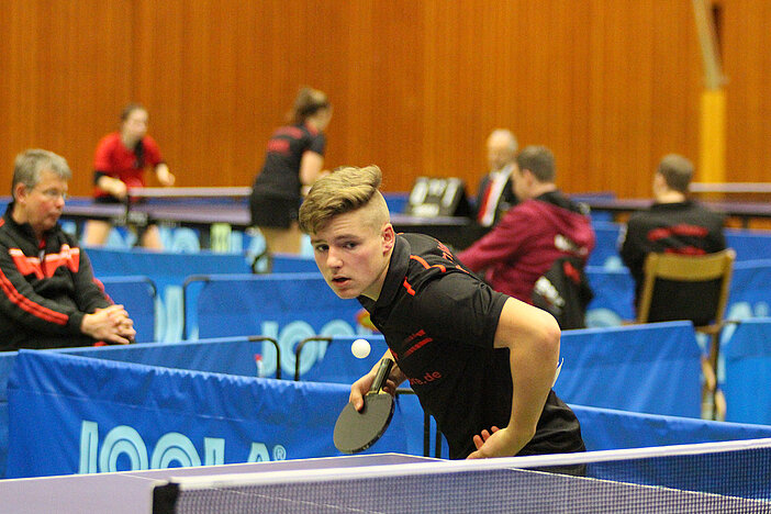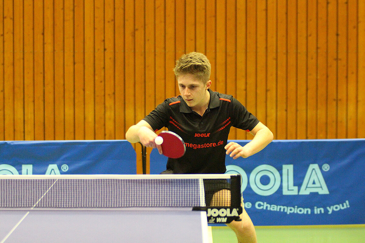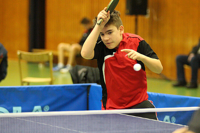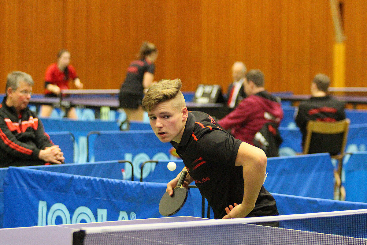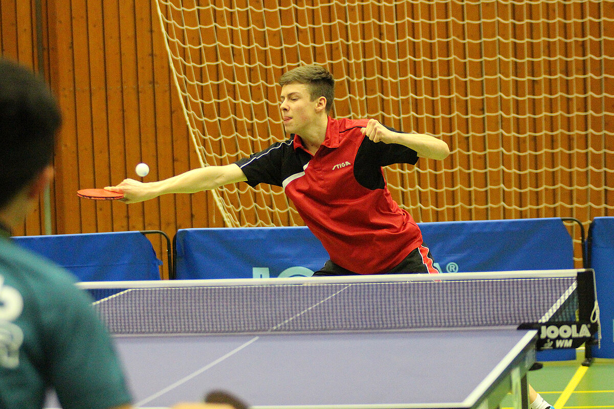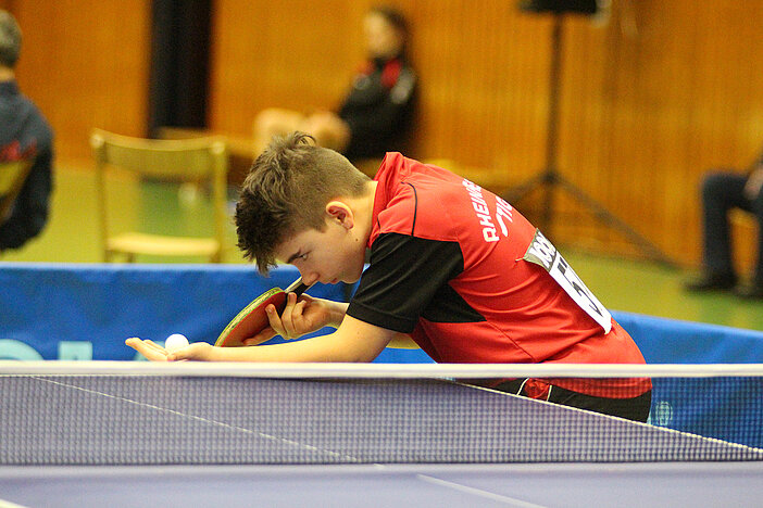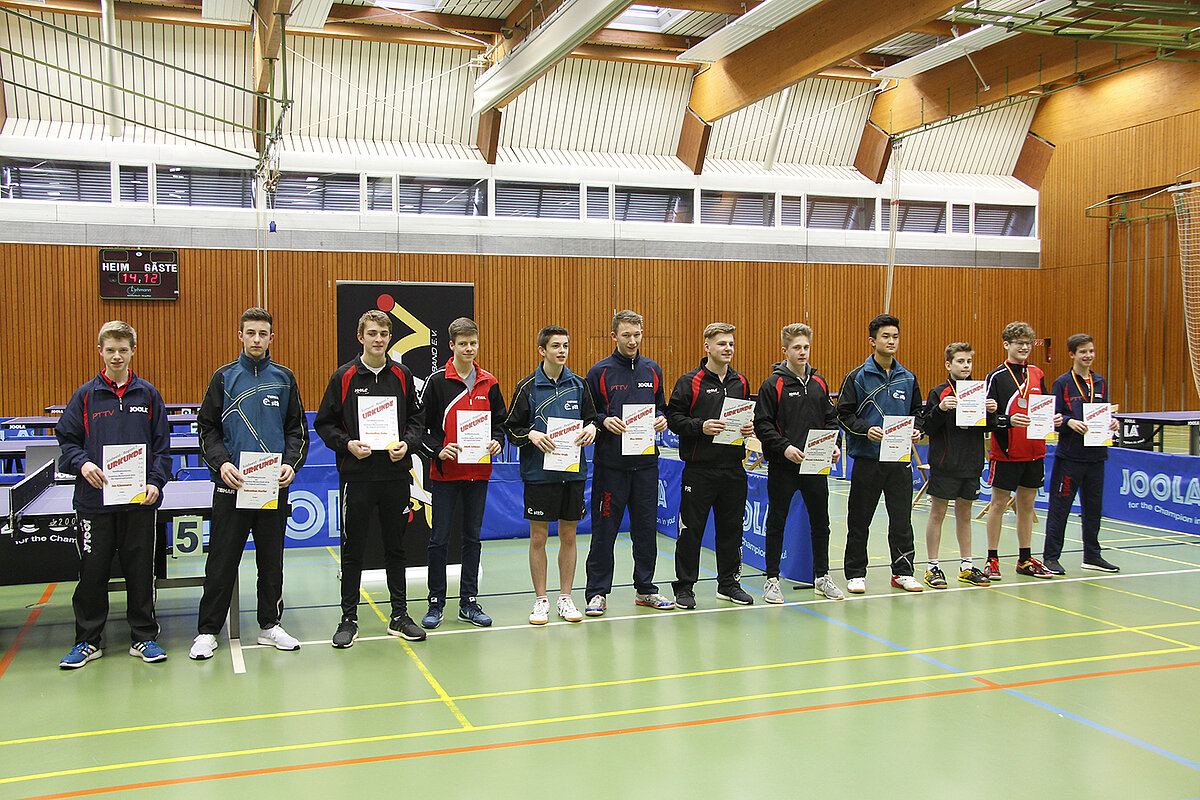 Dass die Leistungsdichte bei den Jungen inzwischen sehr eng ist, zeigte sich unter anderem daran, dass kein Spieler ohne Niederlage das Wochenende überstand. Bemerkenswert ist, dass sich mit Felix Köhler (1. Platz) und Tobias Sältzer (3. Platz) beide Schüler für die Deutschen Jugendmeisterschaften qualifizieren konnten. Hinter Köhler belegte Bax Bury (1. FSV Mainz 05) mit dem um einen Satz besseren Satzverhältnis gegenüber Tobias Platz 2. Auch das Duell um den letzten Startplatz für die Deutschen Meisterschaften war hart umkämpft. Hier hatte der Saarländer Kevin Qu mit dem um 7 Punkten besseren Ballverhältnis bei gleichem Spiel- und Satzverhältnis hauchdünn die Nase vorn und verwies Vincent Schwickert (TTC Zugbrücke Grenzau) und Paul Richter (TuS Weitefeld-Langenbach) auf die Plätze fünf und sechs. Jakob Schwarz (1. FSV Mainz 05, Platz 9) und Maximilian Bohn (TTC Wirges, Platz 10) komplettierten das Aufgebot des R.TTV.R.