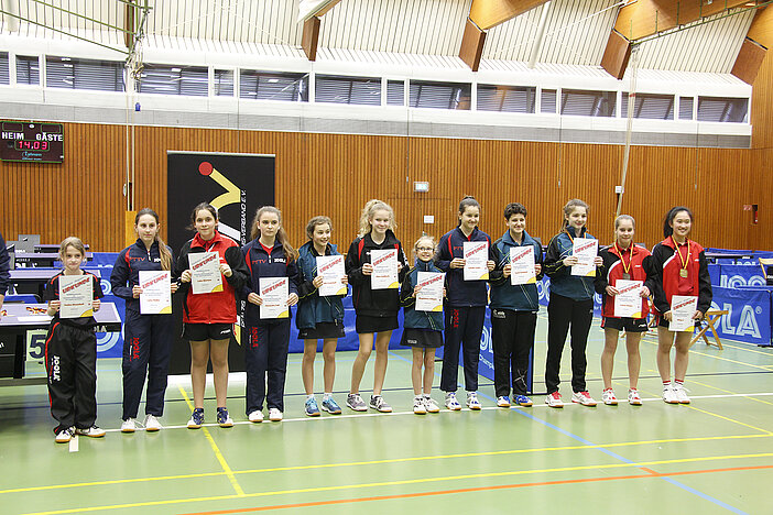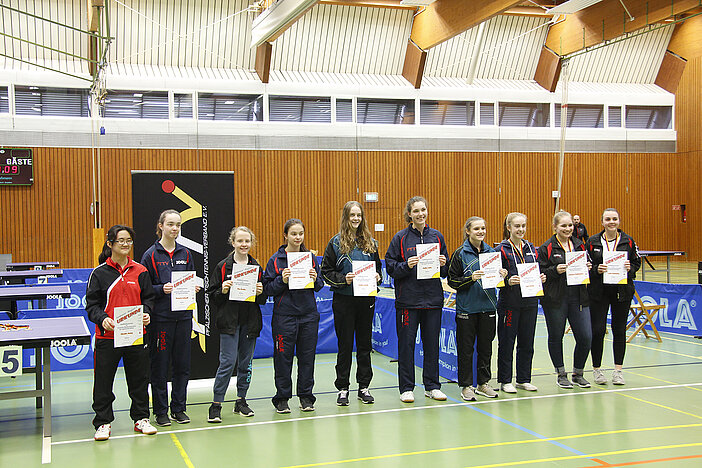 Bei den Schülerinnen sicherte sich Meng Li (TTG Bingen/Münster-Sarmsheim) verlustpunktfrei den Turniersieg vor ihrer Teamkollegin Larissa Berger, die sich dank des besseren Satzverhältnisses Platz zwei erspielte. Alina Gehlbach (TTF Oberwesterwald), Liska Märtens (TSV Gau-Odernheim) und Kaylee Mesenholl (SV Windhagen) sollten erste Erfahrungen in einem solch anstrengenden Turnier sammeln und wussten die Trainer bereits zu überzeugen.
