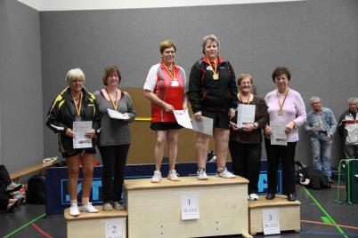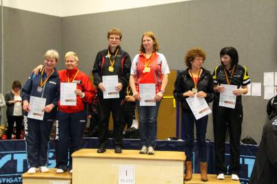 Den Titel eines Südwestdeutschen Meisters konnten bei den Damen Ü 65 Hannelore Dillenberger, SG Mühlbachtal, Herren Ü 80 Günter Krauß, TTG Torney/Engers, sowie im Doppel Damen Ü 50 Ursula Schwickert und Ulrike Hungerbühler, SG Kirchberg/Rhaunen/SG Mühlbachtal, Damen Ü 65 Hannelore Dillenberger mit Brigitte Solinski, beide SG Mühlbachtal sowie bei den Herren Ü 80 Günter Krauß mit Partner Peter Lohner TTG Torney/Engers-TTG Pellenz erringen.