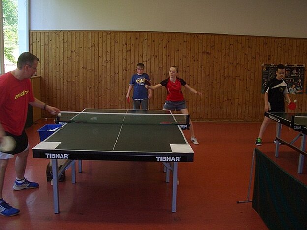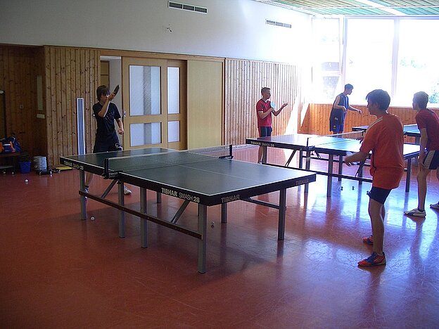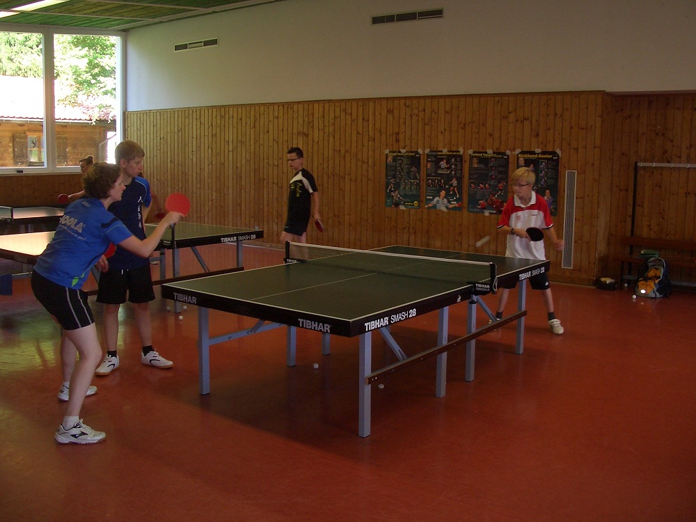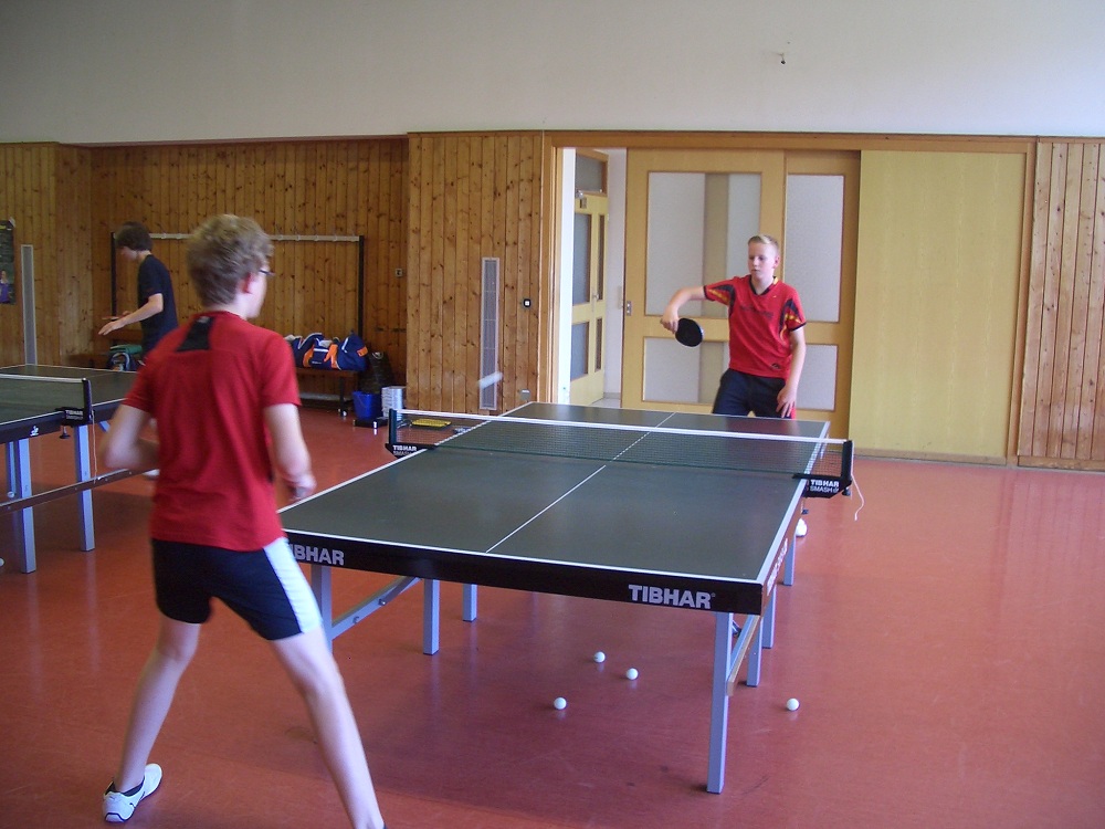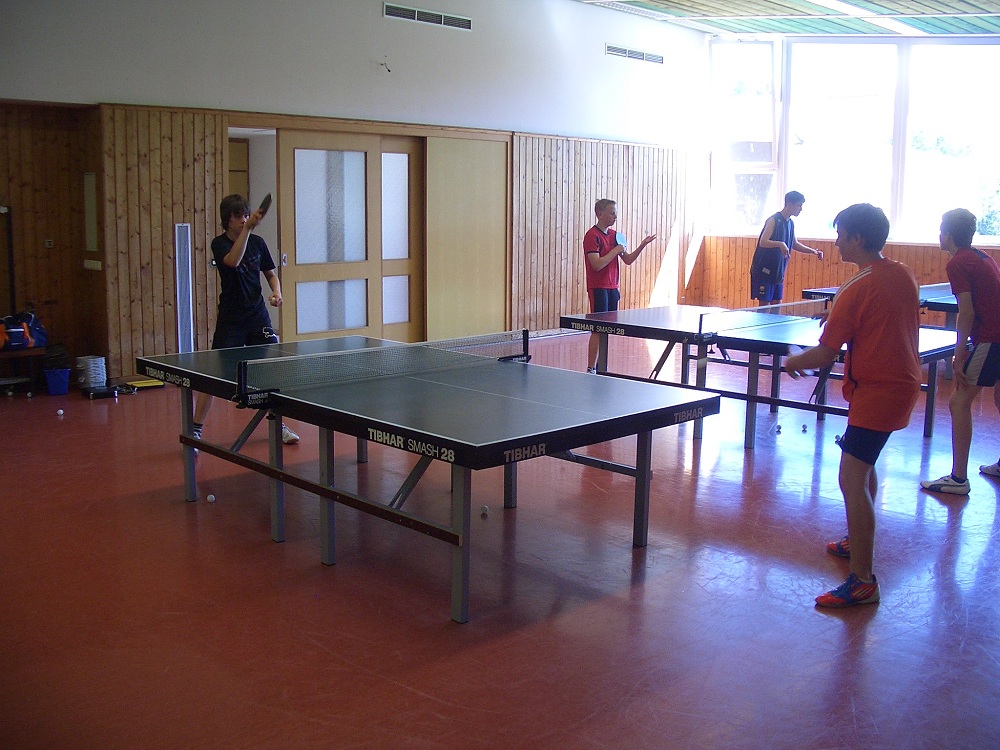Nach der sportlichen Camp-Besichtigung, Getränkeausgabe, ersten sportlichen Freizeitaktivitäten (Tennis, Hi-Ball, Beachvolleyball und Fußball) und anschließendem Mittagessen fanden am Nachmittag die ersten Trainingseinheiten in der Tischtennishalle statt. Während eine Gruppe die erste TT-Einheit unter der Leitung von Andrea Hofmann und Torsten Feuckert absolvierte, nahm die andere Gruppe unter der Aufsicht von Bettina Knopf das Schwimmbad in Beschlag. Einige wollten aber auch nur chillen!