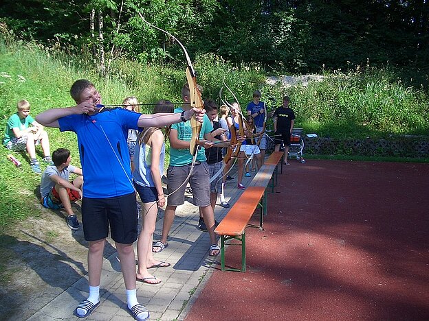 Am nächsten Tag trafen sich die Jugendlichen zum Bogenschießen, schnell konnte man feststellen, dass es nicht so einfach ist, wie man es bei Winnetou oder Robin Hood in den Filmen sieht. Dazwischen immer wieder die Tischtennis-Trainingseinheiten.