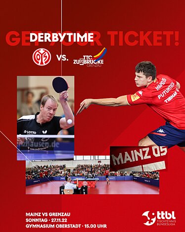 Den nächsten Schritt wollen die Mainzer am Sonntag im erst dritten Heimspiel der Saison gehen. "Ich glaube, dass das Publikum einen Vorteil darstellen kann. Es wäre natürlich schön, wenn wir 400 bis 500 Zuschauer hätten, denn sie können den Unterschied machen", weiß Kasica um die Bedeutung der Fans. Das Kellerduell sieht der FSV-Coach indes als Derby, liegt Grenzau doch nur etwas mehr als eine Autostunde von der rheinland-pfälzischen Landeshauptstadt entfernt. In der fußball-bundesligafreien Zeit sei die Partie gegen den TTC Zugbrücke für alle 05ER die perfekte Möglichkeit, um sportlich auf seine Kosten zu kommen und die 05-DNA aus dem Fußball an die Tischtennis-Platte zu übertragen, hofft der Mainzer Trainer im Kellerduell auf die Unterstützung zahlreicher Zuschauer.